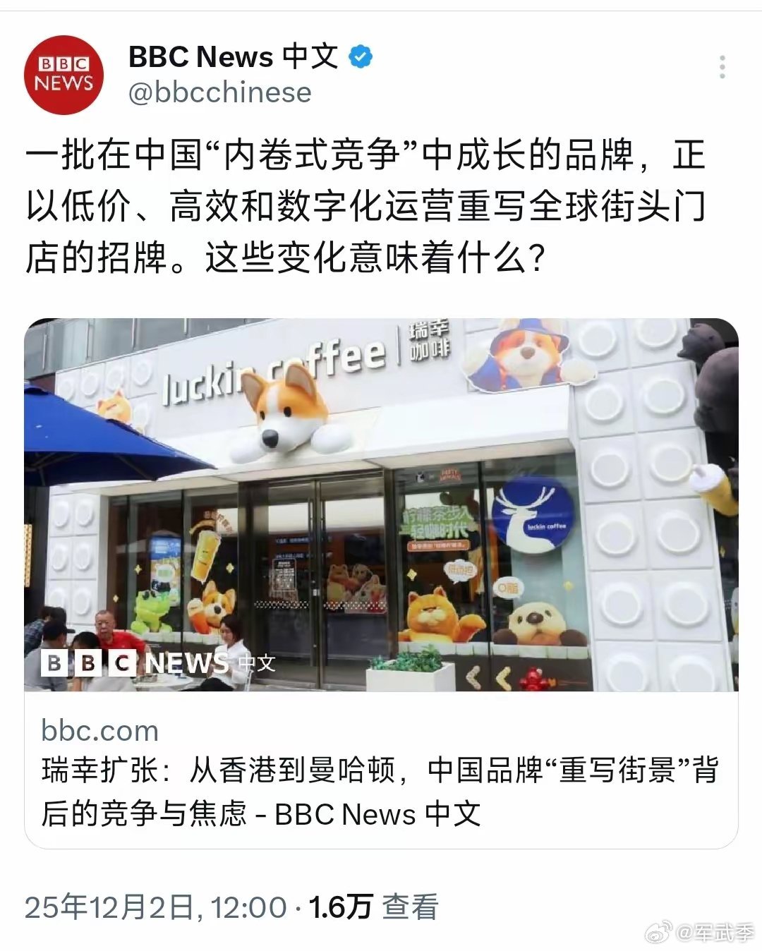 BBC中文网今天报道:“一批在中国‘内卷式竞争’中成长的品牌,正以低价、高效和数字化运营重写全球街头门店的招牌。这些变化意味着什么?”
