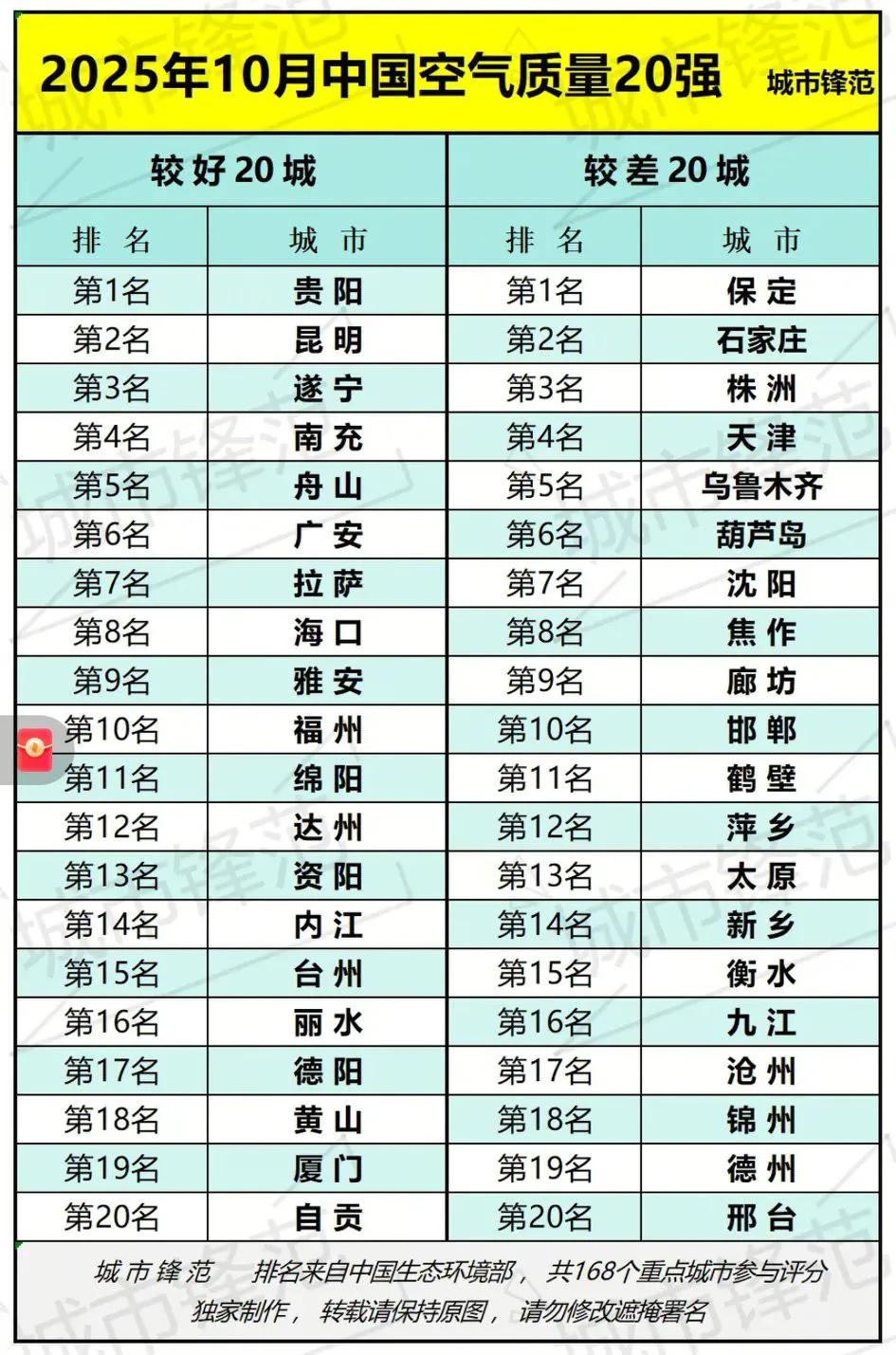 大西南的环境还是太好了! 生态环境部2025年10月数据——贵阳、昆明等云贵城市均入榜:①地理上,[大笑]高海拔+多降水+高森林覆盖率(贵阳52%、昆明超50%),天然净化污染物; ②治理上,云南2024年全省优良率99.1%(全国第一),贵阳PM2.5改善幅度全国第一,[微风]新华网、生态环境部均报道。 数据显示其AQI、PM2.5浓度远低于保定等较差城市,[心]空气质量优势显著。昆明气候宜居 昆明气候 贵阳宜居城市 滇池环保 城市生态达标 贵州森林面积