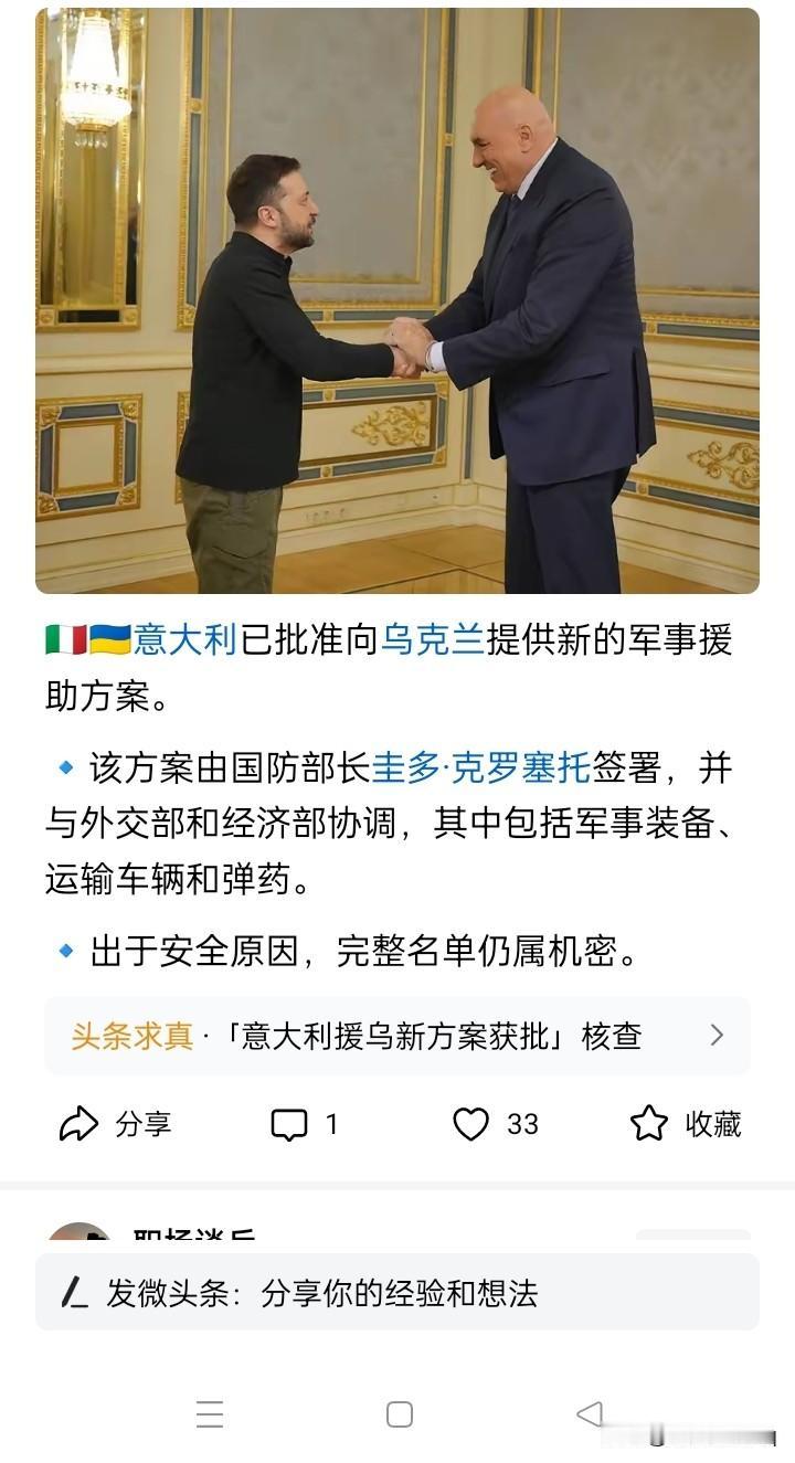 战争更加扑朔迷离! 由于欧洲国家对乌克兰的军事援助采取有别于过去的方式,乌克兰的战争将更加难以捉摸和判断。 自从德国新总理默茨上任之后,就宣布以后对乌克兰援助的武器装备和弹药将不再公开宣布。最近,意大利向乌克兰提供的第12批次武器装备的援助,也采取保密的方式,目前处于秘密状态,不再对外公布。据有媒体推测,这第12批援助,可能包括军用运输车辆、弹药和导弹。目前,还不清楚有多少国家未经公布而直接秘密向乌克兰提供援助的武器装备和弹药。 实际上,公开公布武器装备的情况,一般发生在威慑的时候,让对手因为害怕、恐惧,从而退让。当真正的战争状态下,提前公布武器装备的数量和质量,大概很可能使武器装备失去突然的打击性能。