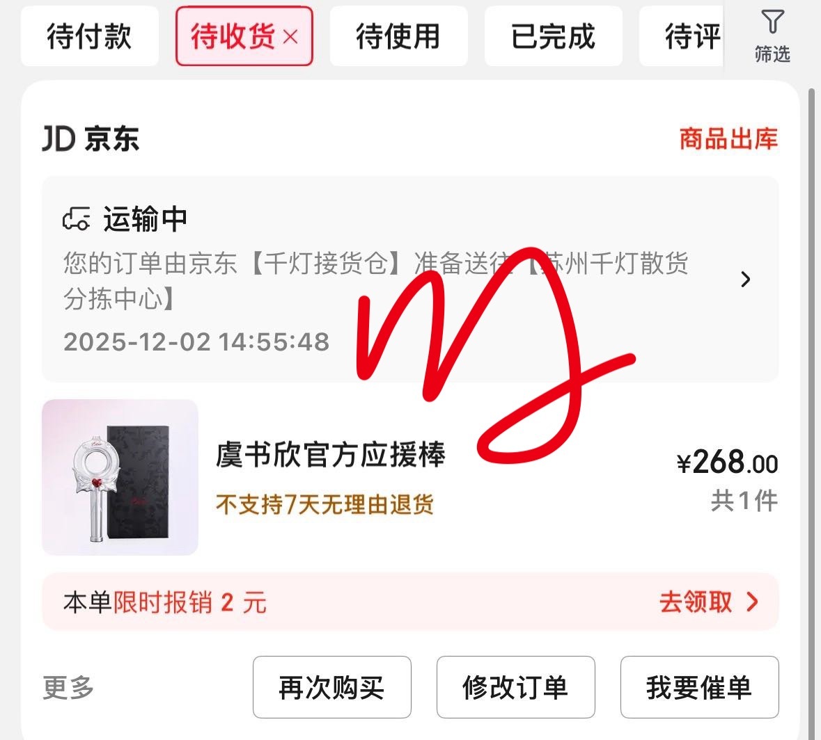 虞书欣应援棒发货喽,明天就能拿到了嘿嘿。虞书欣应援棒开箱