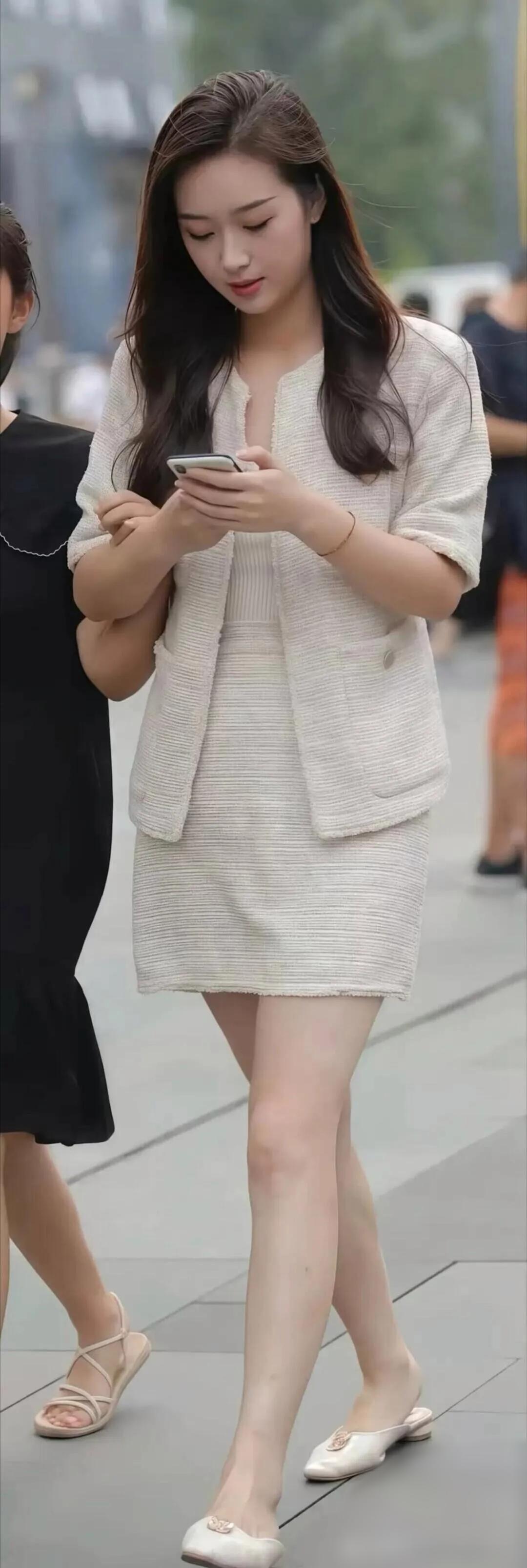 优雅气质穿搭,白色上衣+蓝色长裙,简约而不失时尚!