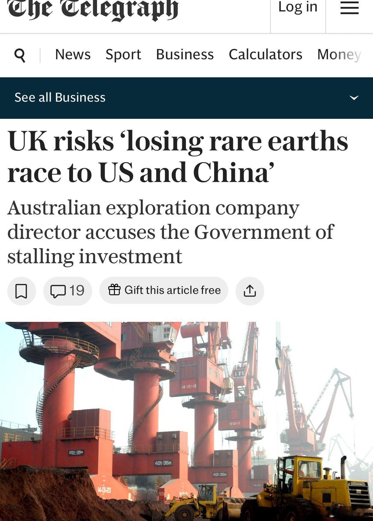 《每日电讯报》:英国面临在“稀土竞赛输给美国和中国”的风险。你得先参赛才能叫竞赛,你都没在赛场上,叫唤个什么劲呢?