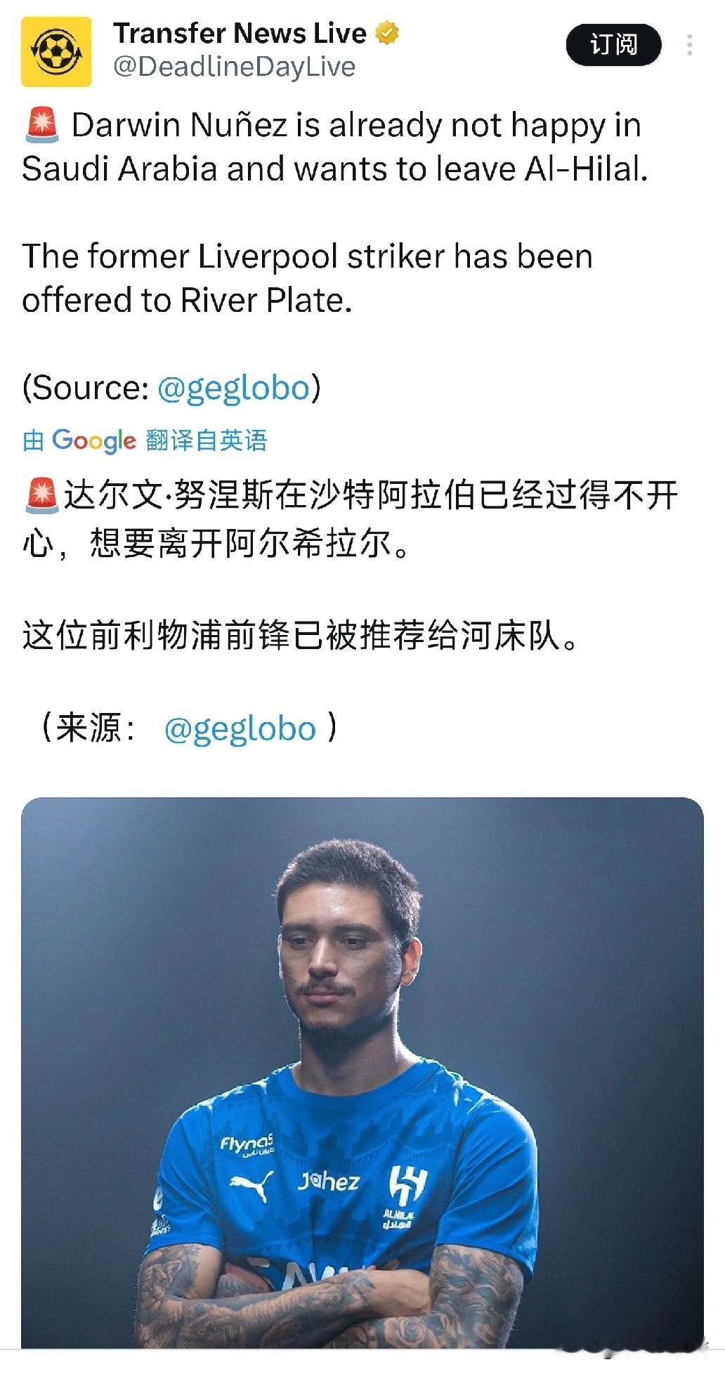 努涅斯!努涅斯经纪人表示努涅斯希望在冬季窗口开启后离开沙特俱乐部,他想重新回到欧洲,现在多支球队都对努涅斯产生了兴趣。没错,这个多支球队里面有尤文图斯和两支米兰球队。 据说努涅斯经纪人在运作努涅斯去阿根廷,河床俱乐部是首选,但努涅斯离开沙特俱乐部加盟河床俱乐部的可能性基本为零,因为沙特俱乐部并不愿意接受租借与承担工资的条款,努涅斯想离开必须是转会,有偿租借都不在考虑范围,不要说转会,哪怕是租借河床俱乐部都负担不起。 努涅斯是标准的中锋,他绝对符合阿莱格里的要求,当然努涅斯射门确实有点抽象,但射门抽象其他能力还是不错的,貌似他在沙特俱乐部表现还是可以的,有可能是其他原因导致他不愿意留在沙特,但努涅斯和之前的米特洛维奇不同,米特洛维奇毕竟年龄大了,愿意换个地方赚钱,努涅斯才26岁,他不能从沙特去卡塔尔,想去阿根廷肯定是考虑南美足球不需要更多适应,可以很好的寻找状态。