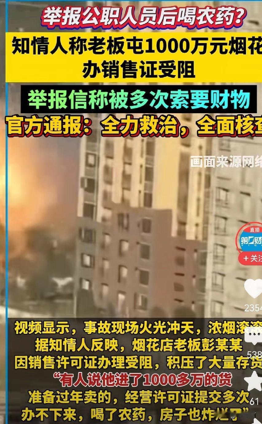 近日,湖南郴州的烟花爆炸案大家应该都看到了,一个才39岁的男子,为了迎接过年准备了烟花爆竹,可却因为经营许可证办不下来,还被人索要财物,双重压力下的他,选择了喝农药。 不知怎么说,为什么这么冲动呢,死都不怕,会怕眼前的困难吗,不是说有矛盾就找问题根源吗,如果别家都可以办下来,直接找相关部门走正常流程啊? 其实我更不能理解的是,为什么他要囤大量的货,整整一仓库,应该办理好手续再去进货,这样就没有经济上的压力,货物的堆积,能办下来就经营,办不下来那就再等等。 可惜说再多都没用,人一走茶已凉,但还是希望有关部门能还他一个公道,不要寒了本分创业者的心,他没有选择铤而走险的无证经营,而是一门心思都想办证,正规渠道销售,他什么都没有做错啊,为什么要刁难他,不给他办证。 (图片来自网络视频)