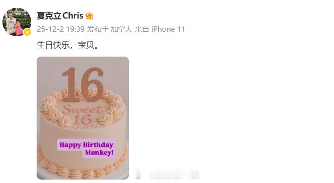 夏克立给女儿庆生夏克立给女儿夏天庆生夏克立晒生日蛋糕照片给女儿夏天庆生。据悉,
