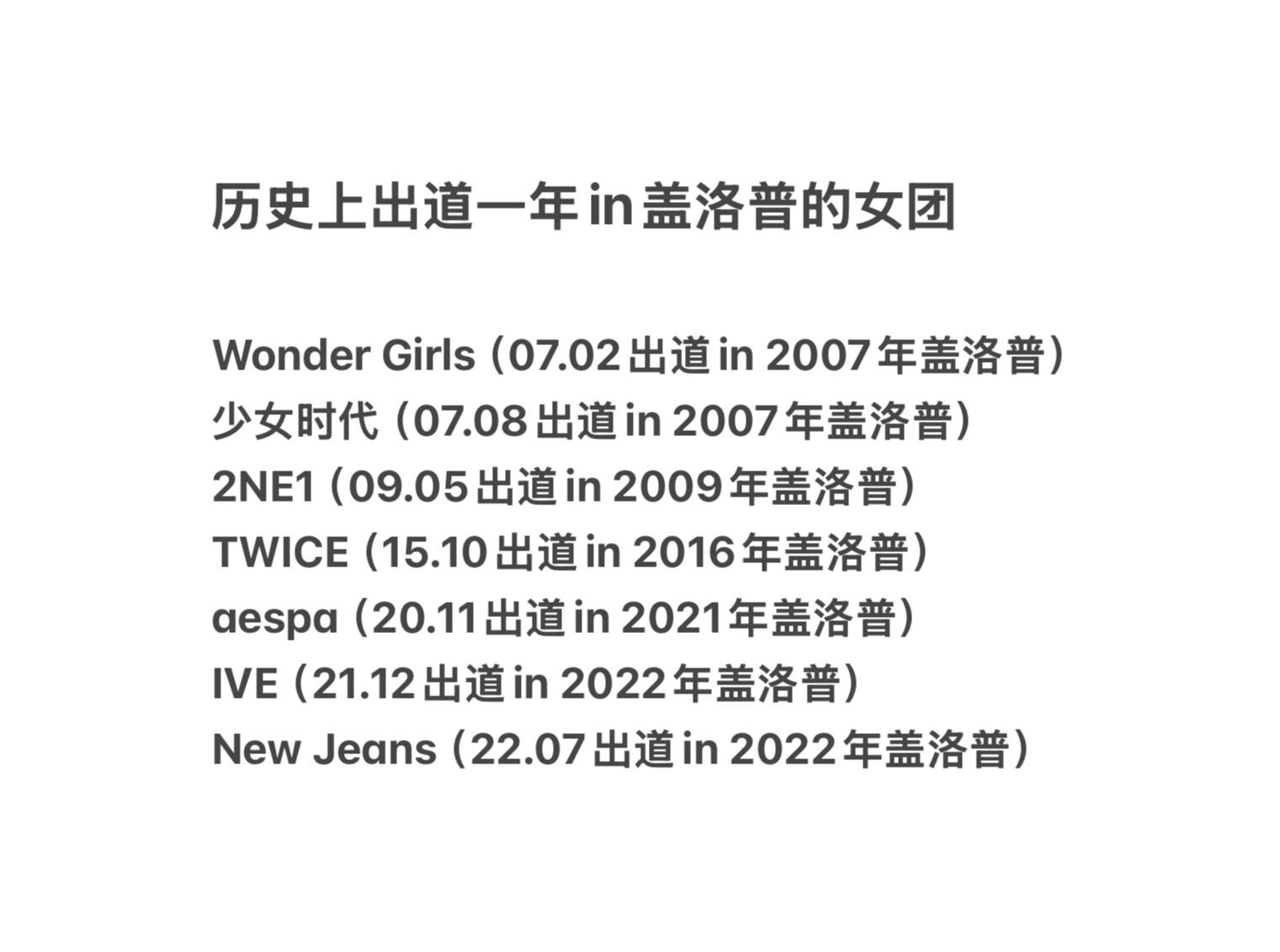 历史上出道即IN盖洛普的女团