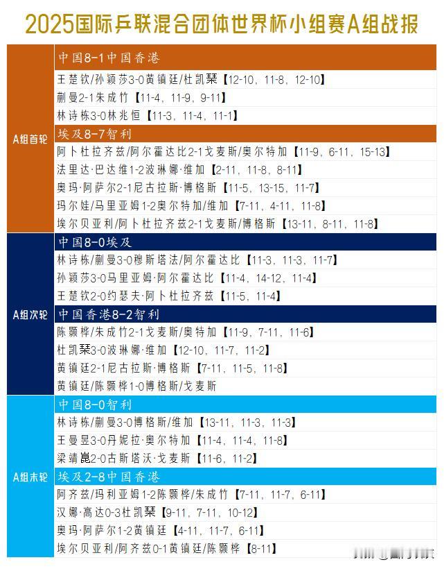 【三战全胜仅丢一局!国乒携手中国香港晋级八强循环赛!】 国乒打香港丢了一局,这一局成了小组赛国乒唯一输球的一局。 中国香港打智利,打埃及都是8-2,不偏不倚!