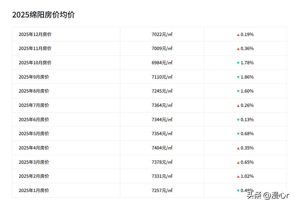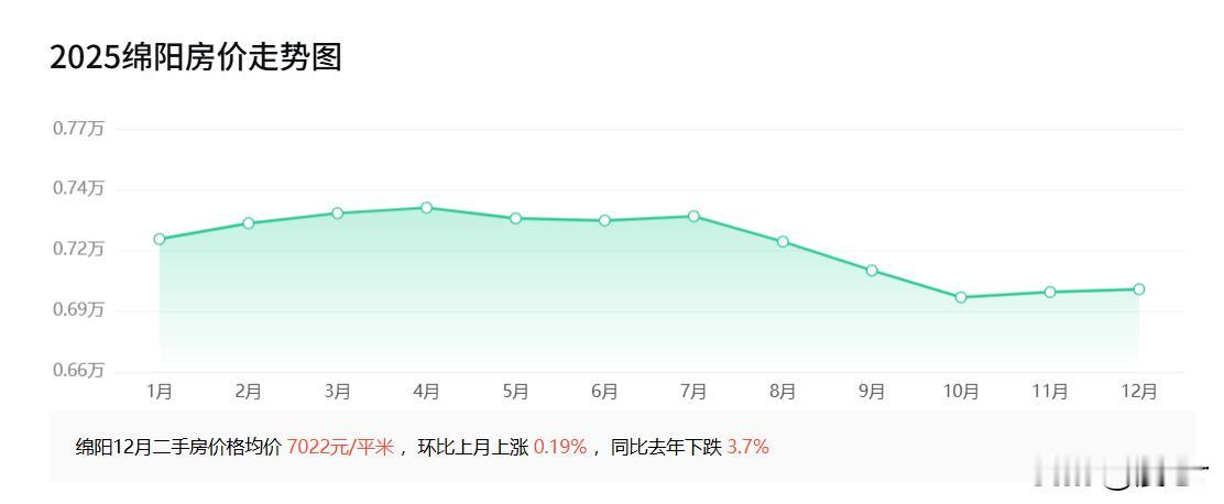 2015年11月,四川绵阳二手房均价4519元; 2016年11月,四川绵阳二手房均价5172元; 2017年11月,四川绵阳二手房均价6776元; 2018年11月,四川绵阳二手房均价7717元; 2019年11月,四川绵阳二手房均价7632元; 2020年11月,四川绵阳二手房均价7591元; 2021年11月,四川绵阳二手房均价8159元; 2022年11月,四川绵阳二手房均价8554元; 2023年11月,四川绵阳二手房均价8192元; 2024年11月,四川绵阳二手房均价7302元; 2025年11月,四川绵阳二手房均价7009元。 近十年,绵阳的房价可以明显的分为三个阶段: 2015年至2018年,在全国性去库存政策和货币化棚改的大背景,绵阳房价涨势非常猛,从4519元涨到7717元。 2019年至2021年,绵阳的房价稳定在7600元-8200元之间。 2022年至2025年,2022年绵阳的房价在创下历史最高点后,开始稳步回调,截至目前,房价已回归至2017年-2018年期间的水平。 其实,只看房价数据是片面的,本质还是得结合城市的经济、产业和人口等综合因素,绵阳的经济整体上保持稳中有进,2024年绵阳的GDP达4344.03亿元,2025年上半年,绵阳GDP同比增长6.8%,前三季度同比增长6.1%。 2024年末,绵阳常住人口492.20万人,仅2025年第一季度,绵阳就新增了1.1万常住人口,成为四川地级市中增长最多的城市。 写在最后,绵阳楼市的十年,经历了一个完整的周期。从狂热到平稳。当下的价格回调,并非城市价值的衰减,反而是将经济成长和人口增长的基本面,更真实地映射到了房价上,在房住不炒的政策背景下,绵阳的房价会更加理性,也为真正需要好房子的购房者提供了更多的选择。