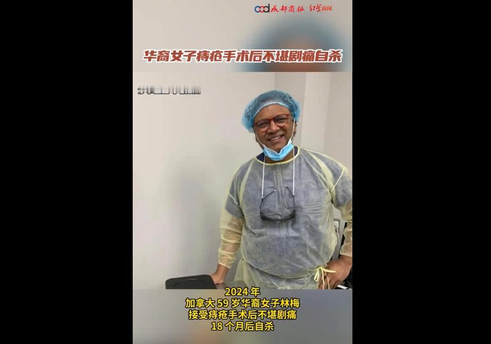 加拿大 59 岁华裔女子林梅做痔疮手术后,遭 18 个月剧痛折磨后自杀。 涉事医生马哈拉杰还背着多起官司,被曝常未经患者同意就做手术,像 “拿病人身体做实验”。 已有 12 名患者投诉他,而监管机构 CPSO 早有调查结论,却没及时处理,此前有人投诉也没人管。 这事儿太让人心痛又气愤了! 医生本该救死扶伤,马哈拉杰却把患者当试验品,不经同意就做手术,还让林梅受了一年半剧痛最后自杀,简直没医德。 更可气的是监管机构 CPSO,明明早知道医生有问题,却不及时制止,有人投诉也不管,妥妥的失职。 痔疮手术本身就容易疼,遇到这种不负责任的医生,痛苦更是翻倍。 医疗不是小事,医生得守规矩,尊重患者的知情权,监管部门更得把好关,发现问题及时处理,别等出了人命才补救。 希望这次能严惩涉事医生和失职的监管方,给逝者和其他患者一个交代,也给所有医生和监管机构敲个警钟。