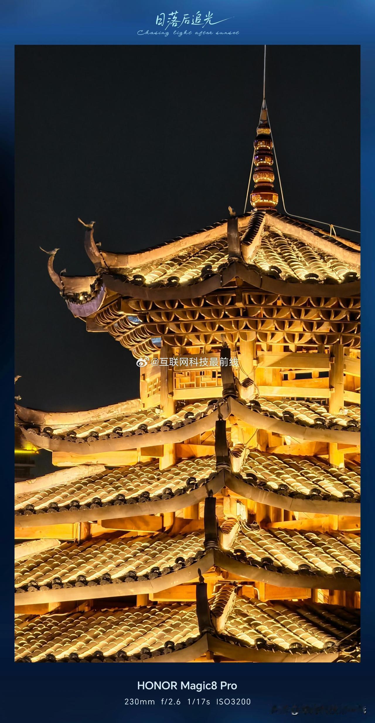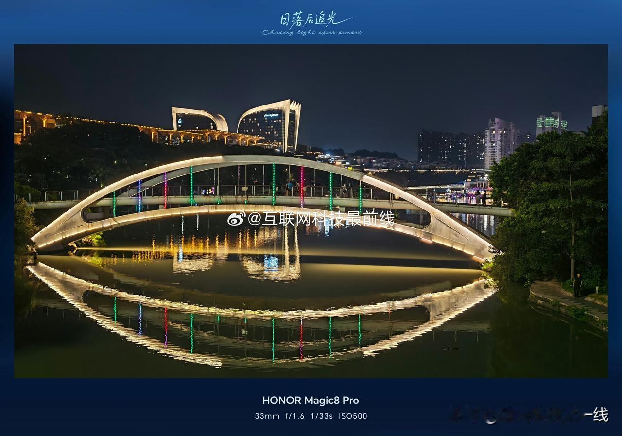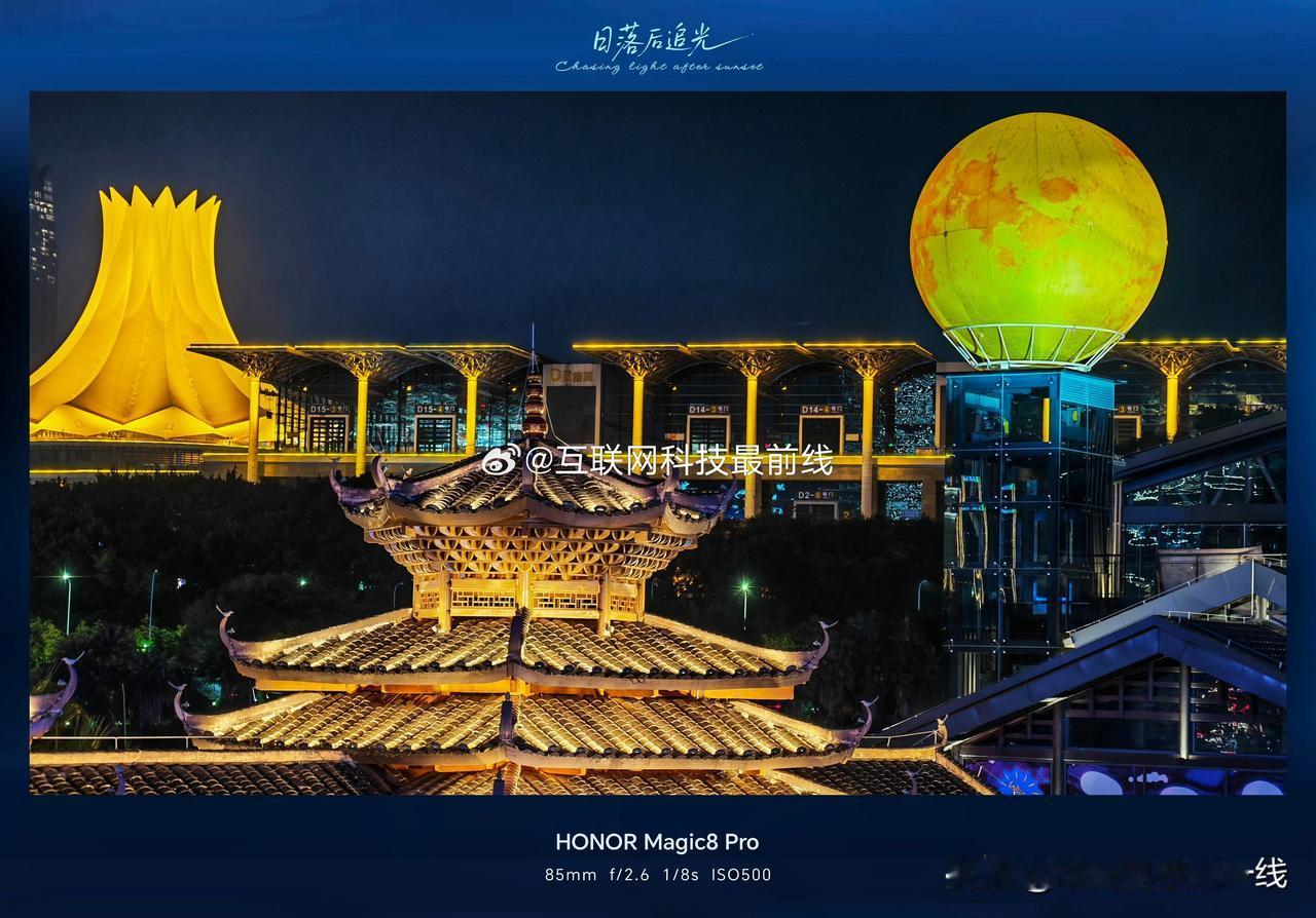 既然有话题就再更一波样张,先要说明的是这个样张大概是在发售前去问相熟的销售借的,固件应该还是110(就是没有完全ai赋能的那一版),对于夜景拍摄传统设备要么就是局部过曝或者是不清晰,但从实际的拍照来看,荣耀Magic8 Pro的表现相当能打,夜是黑的,高光的部分也没有过曝,细节也挺好,妥妥的夜拍神器[憨笑]夜色里的中国荣耀magic8 微博手机影像年