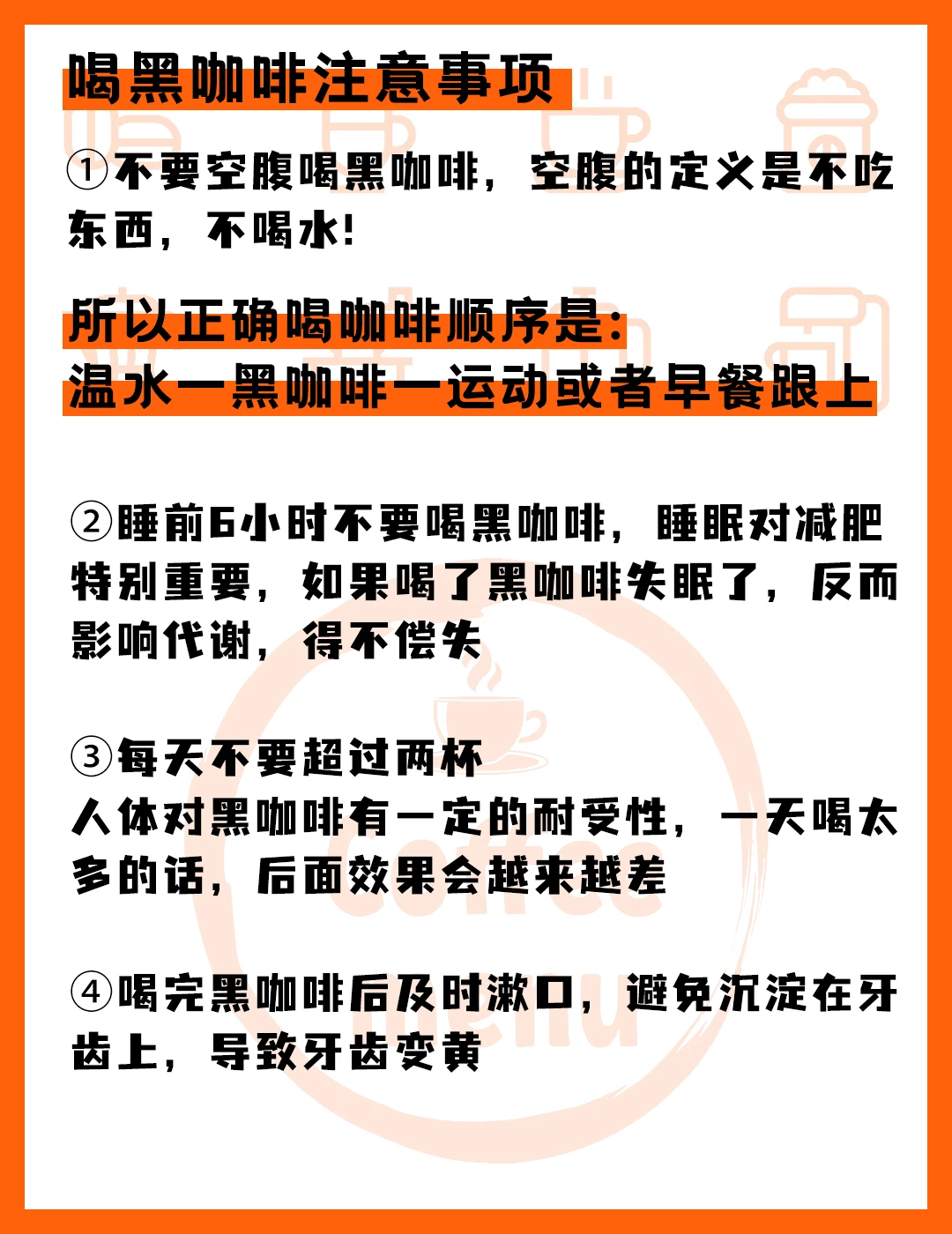 1不要空腹喝黑咖啡,空腹的定义是不吃东西,不喝水!
