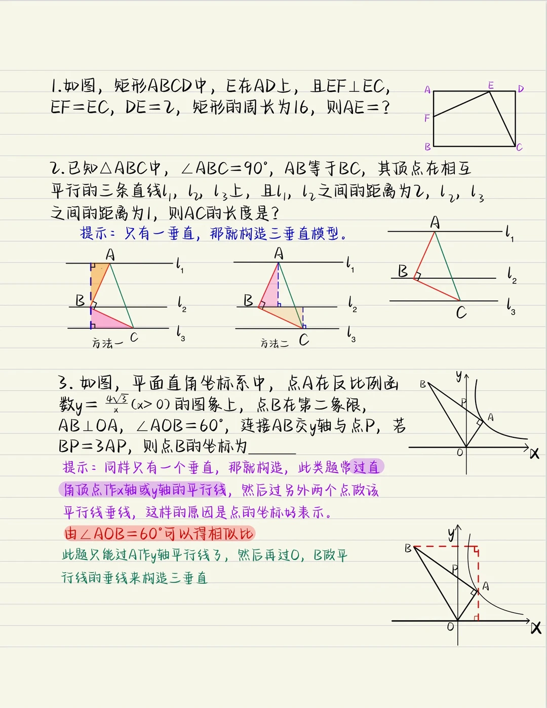 一线三等角整个初中阶段都是非常重要的模型,想学好几何,这个是必须熟练掌握的。 很多同学问我书籍的事情,想做一份精品的给大家,所以还在修改中,但是吧,真不远了,