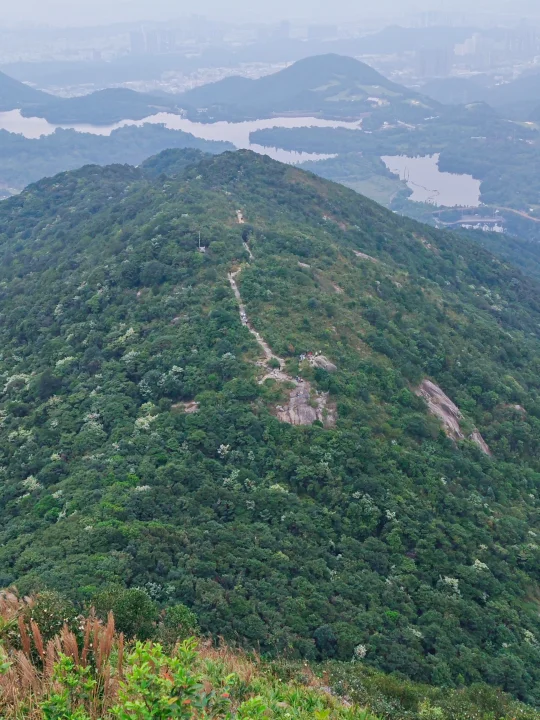 3️⃣ 登顶梅沙尖的那一刻,真的会尖叫!360°无死角视野,三洲田水库像一块蓝宝石,远处就是大海,所有疲惫瞬间清空!