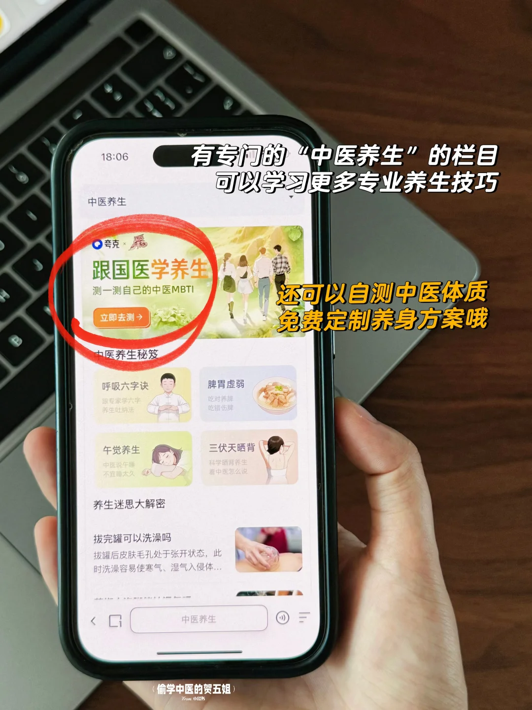 搜索🔍“中医养生”,完成中医体质测试