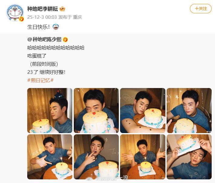 李耕耘祝陈少熙生日快乐李耕耘为陈少熙庆生好速度的生日快乐!