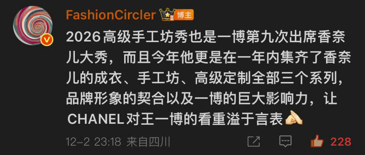 王一博第九次香奈儿看秀,这次的待遇依旧顶格,新创意总监首秀新系列的内娱首穿。不愧是香家门面,内娱第一人。
