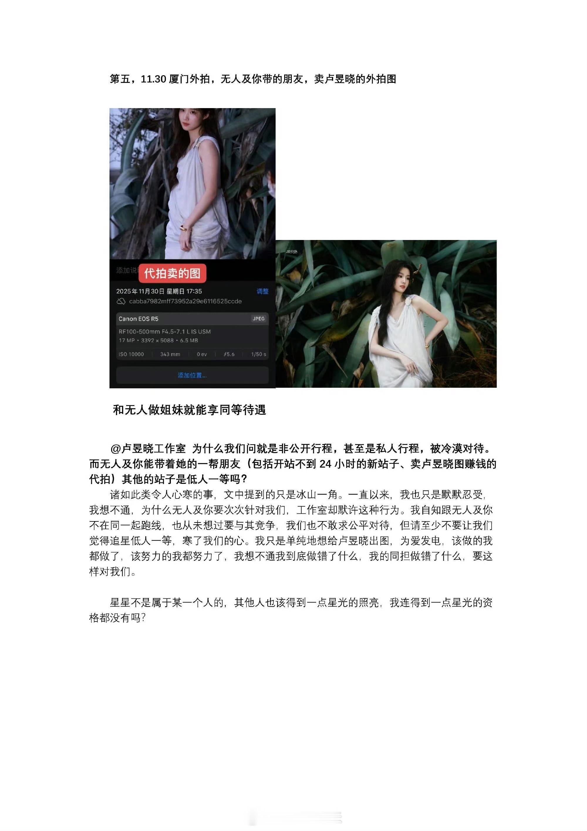 曝卢昱晓工作室私联站姐 卢昱晓站姐喊话工作室,称卢昱晓另一个站姐“无人及你”和工作室团队私联,非公开行程却能很快得到消息带朋友去拍卢昱晓,还和团队同进同出同坐一辆车,还拍卢昱晓合作过的演员的图拿去卖