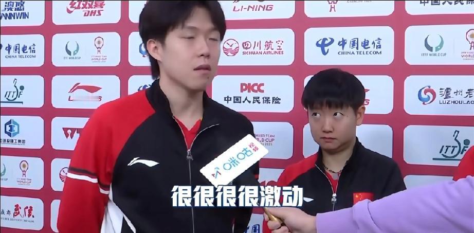 2025年成都“乒乓球混合团体世界杯”上,王楚钦作为运动员代表上台宣誓,在赛后的采访中,王楚钦表示“很昂扬,很激动,很荣幸”。而边上孙颖莎的表情亮了,先是翻了白眼,然后扭头偷笑…… 网友吐槽:他俩私下肯定不是这么说话的,所以把莎莎整笑了!大头怎么对着镜头就结结巴巴啊,也是见过大世面的人了!