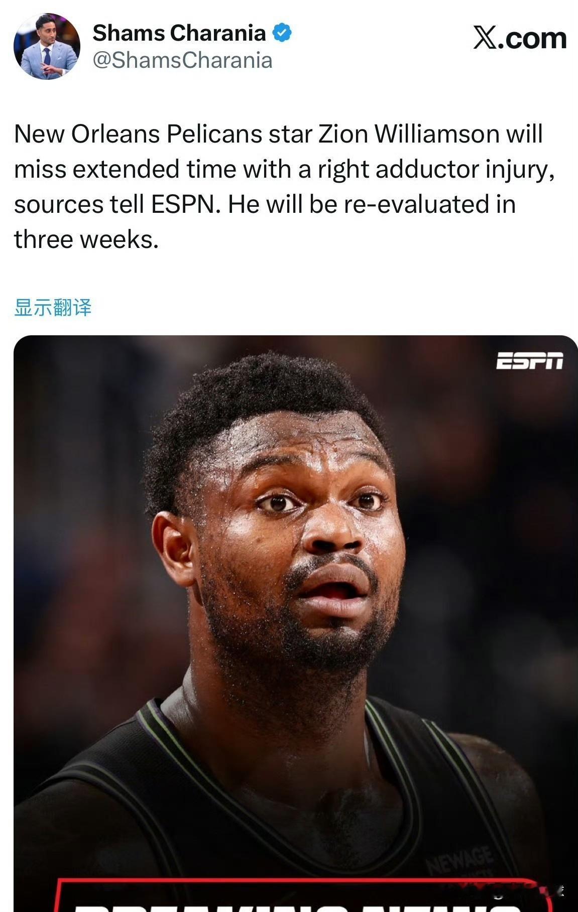 减重也没用!锡安将无限期缺阵! 据权威记者Shams报道:鹈鹕队当家球星锡安因右内收肌伤势将长期缺阵,他将在三周后进行复查。 本赛季至今,锡安只为鹈鹕队出战了10场比赛,缺席了11场比赛,这让他休赛期疯狂减重想要保持健康的行为沦为了笑柄。即使减重明显,他在本赛季依旧遭遇了腿筋拉伤、右内收肌拉伤的伤病,出战的比赛还没有缺席的多。本赛季或许是锡安职业生涯最想多打比赛、最想赢球的赛季,为此他在休赛期付出了巨大的努力,但命运仍然在和他开玩笑,这肯定会对他的心态和心理造成影响。最终是枯木逢春重回巅峰的励志故事还是泯然众人的不甚唏嘘,你们怎么看?
