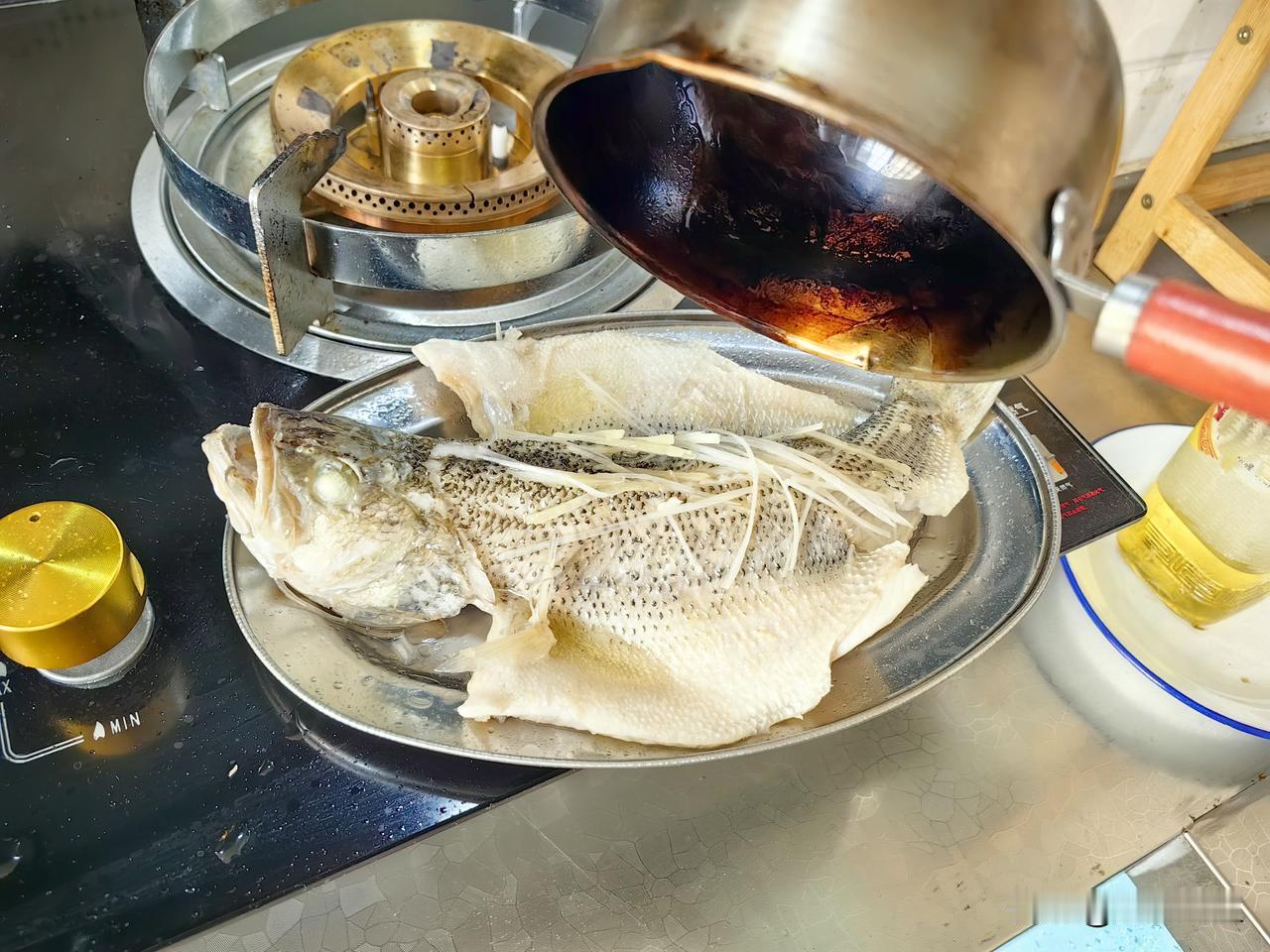清蒸鲈鱼做法竟然这么简单,味道真的是太棒了[赞] 鲈鱼洗干净用刀划开,葱姜水浸泡15--30分钟,锅中水开放上鲈鱼蒸8分钟。准备葱丝儿,酱卤汁,鲈鱼蒸好后葱丝儿放后背用煎油淋背 ,沿盘边倒酱卤汁,上桌开吃,味道鲜嫩,味道杠杠滴[赞][赞][赞]