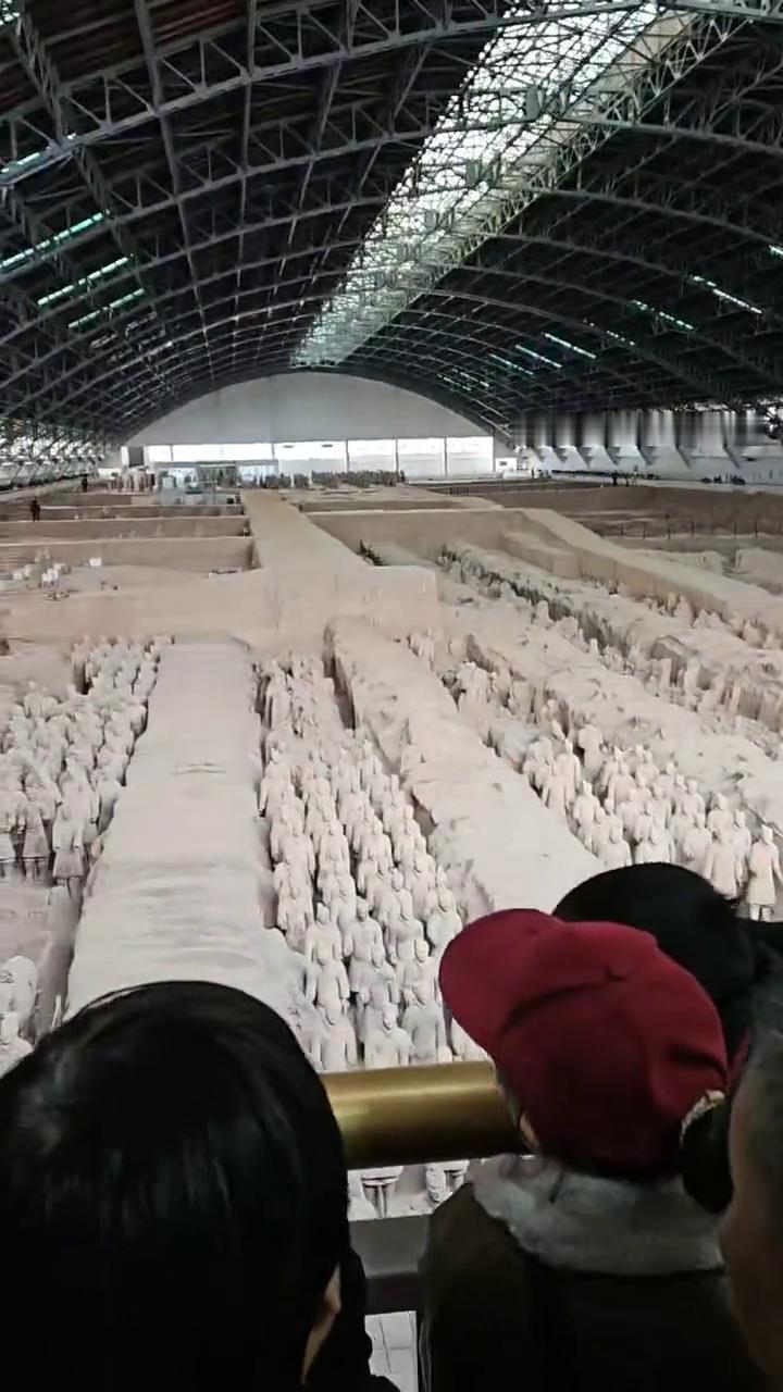但是很可惜,今天只能看到前面三分之一,问完了之后往前走去侧面。专家用了八年的时间才把前面兵马俑修复完好。有人说兵马俑为什么都是破的?