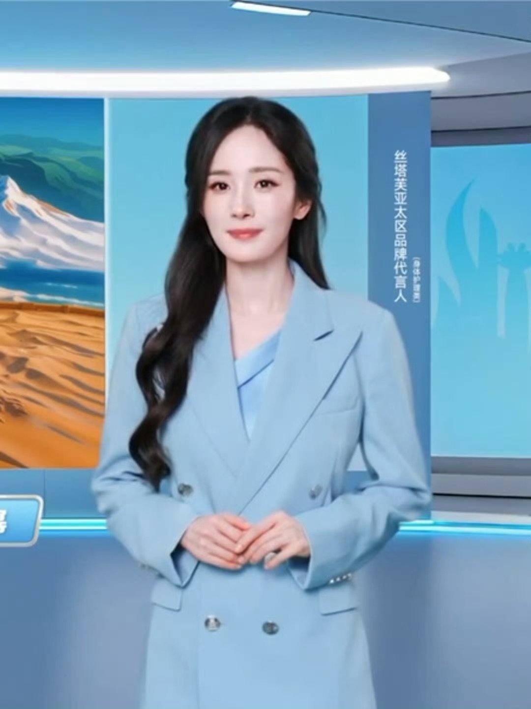 杨幂报天气预报杨幂蓝色职业装蓝色职业装好正