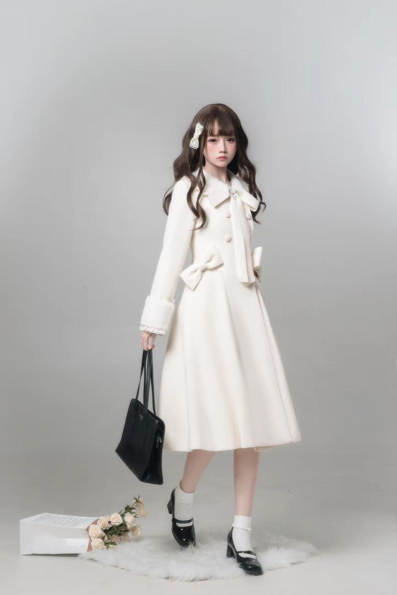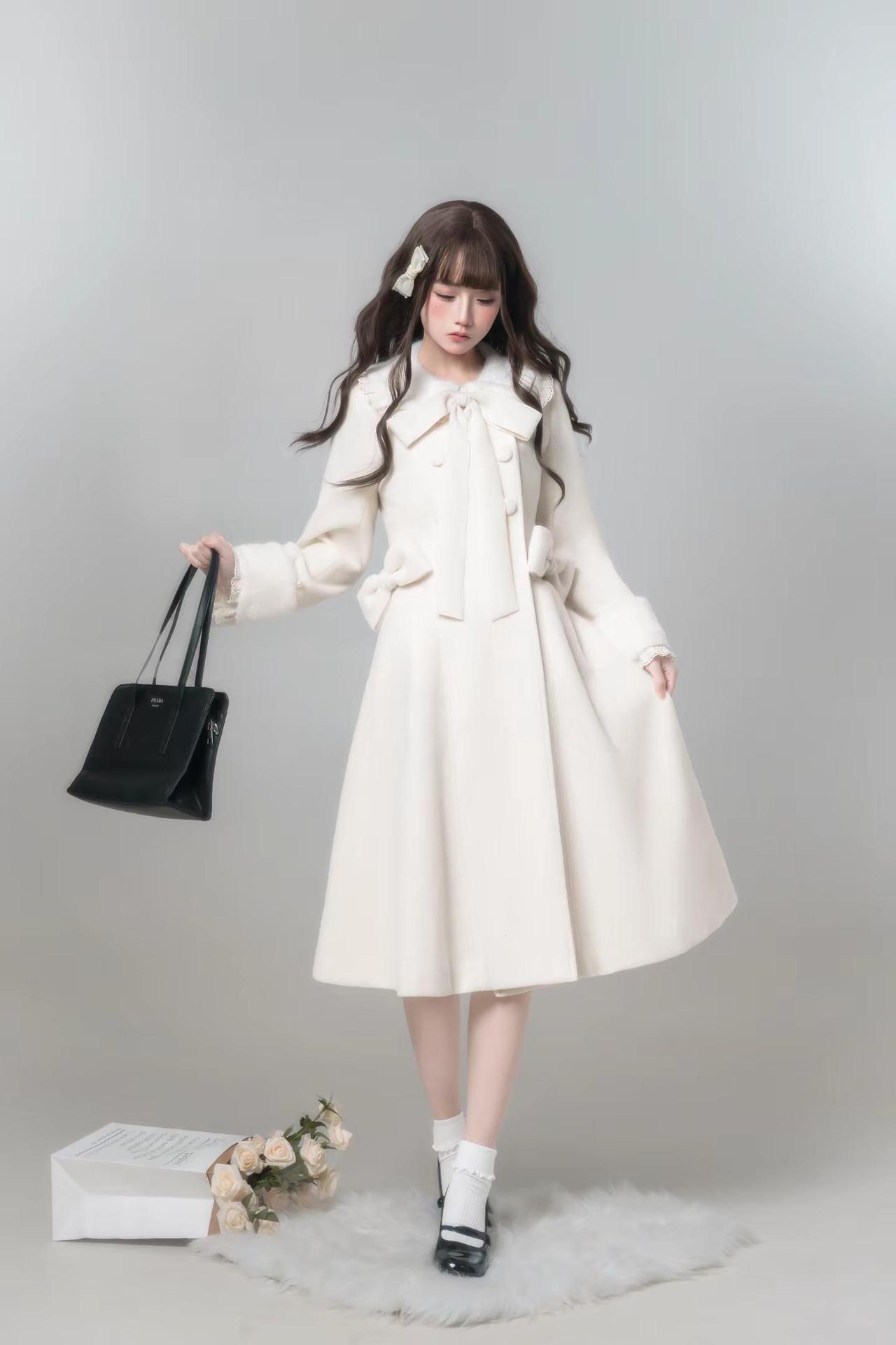 很乖的娃娃领大衣~及膝的长度!非常可爱且保暖的一件~日系 日系穿搭 大衣 娃娃领