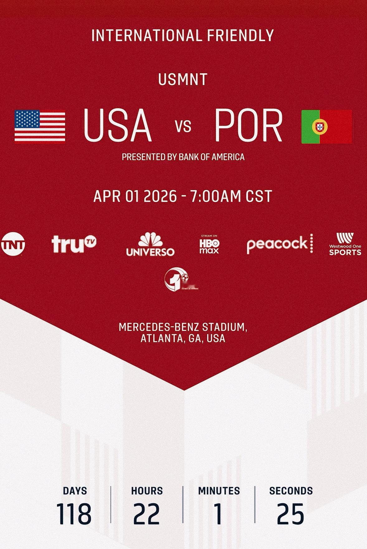 C罗C罗日常 🛑 利雅得胜利友谊赛『2025年12月10日』周三,麦加时间18:30 | 北京时间23:30,利雅得胜利将客场对阵来自阿联酋的瓦哈达俱乐部,比赛将在阿布扎比的纳哈扬体育场进行。🛑 葡萄牙国家队友谊赛『2026年3月28日』周六,墨西哥当地时间晚19:00 | 北京时间上午9:00,葡萄牙队将客场对阵墨西哥队,比赛将在墨西哥城的阿兹特克体育场进行。🛑 葡萄牙国家队友谊赛『2026年4月1日』周三,美国中部当地时间上午7:00 | 北京时间晚21:00,葡萄牙队将客场对阵美国队,比赛将在亚特兰大的梅德赛斯-奔驰体育场进行。专栏 · C罗比赛日