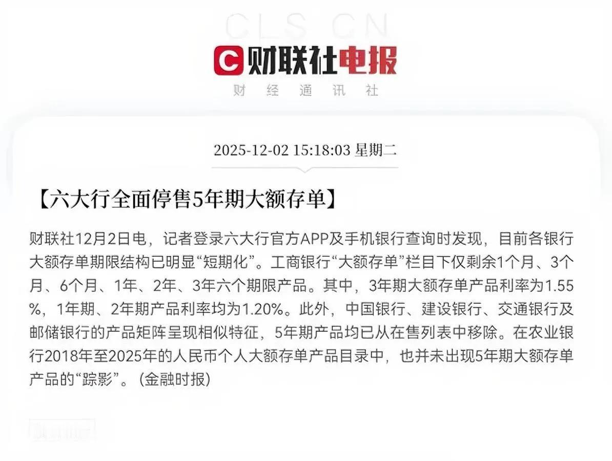 六大行突然砍了五年大额存款! 不是不让存,是利率低到银行都觉得“留着没必要”—