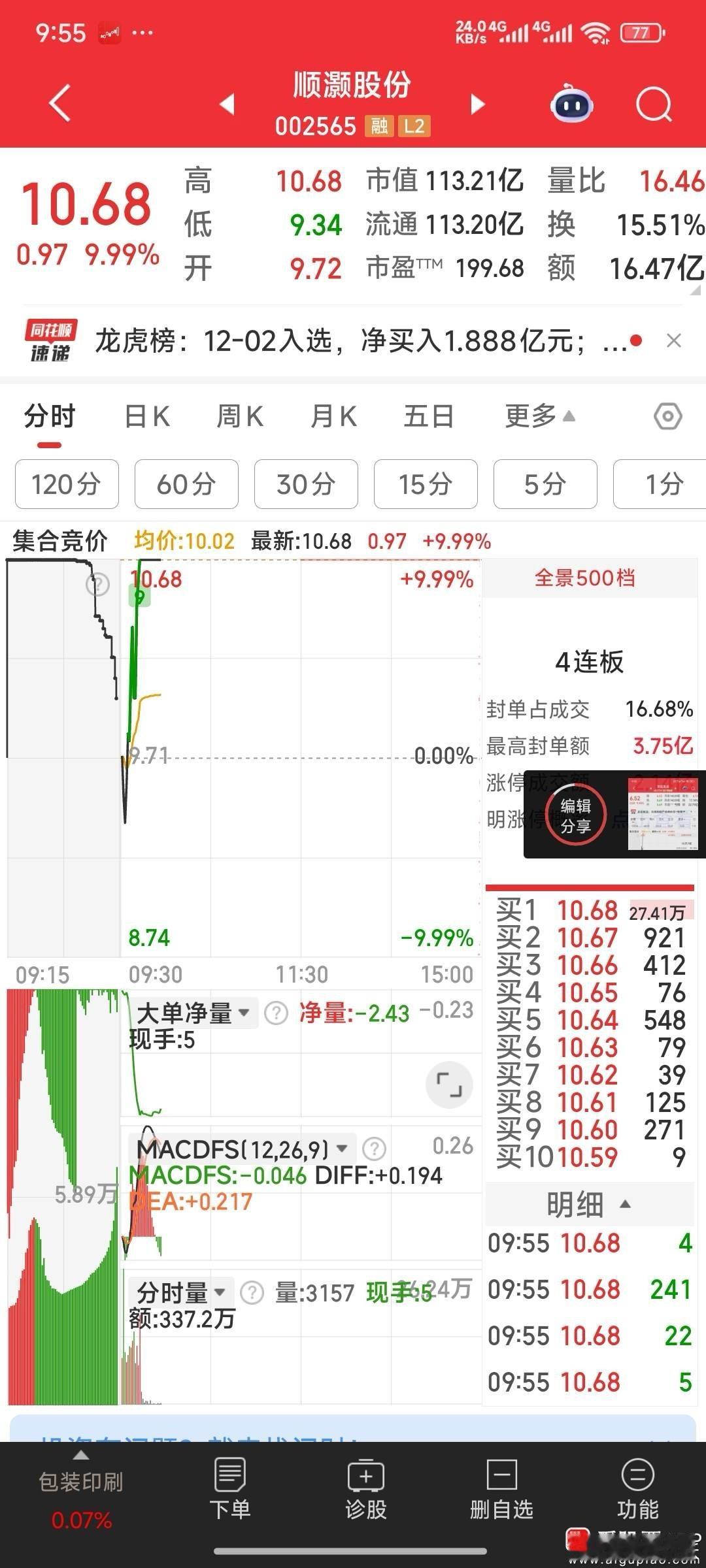 给个恭喜恭喜:昨天干的实达集团,顺灏股份又涨停了。有货的,也点个888吧