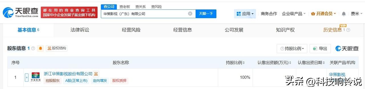 【华策影视在广东成立新公司 注册资本1000万】 天眼查工商信息显示,近日,华策影视(广东)有限公司成立,法定代表人为贾尧,注册资本1000万人民币,经营范围包括会议及展览服务、社会经济咨询服务、电视剧发行等。股东信息显示,该公司由华策影视(300133)全资持股。 天眼查信息: