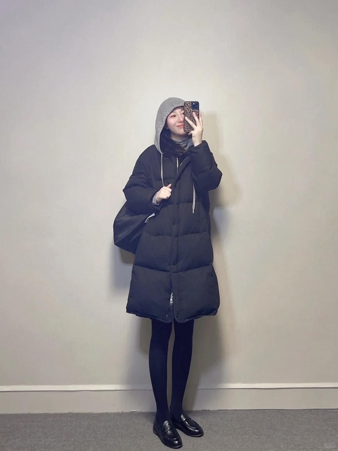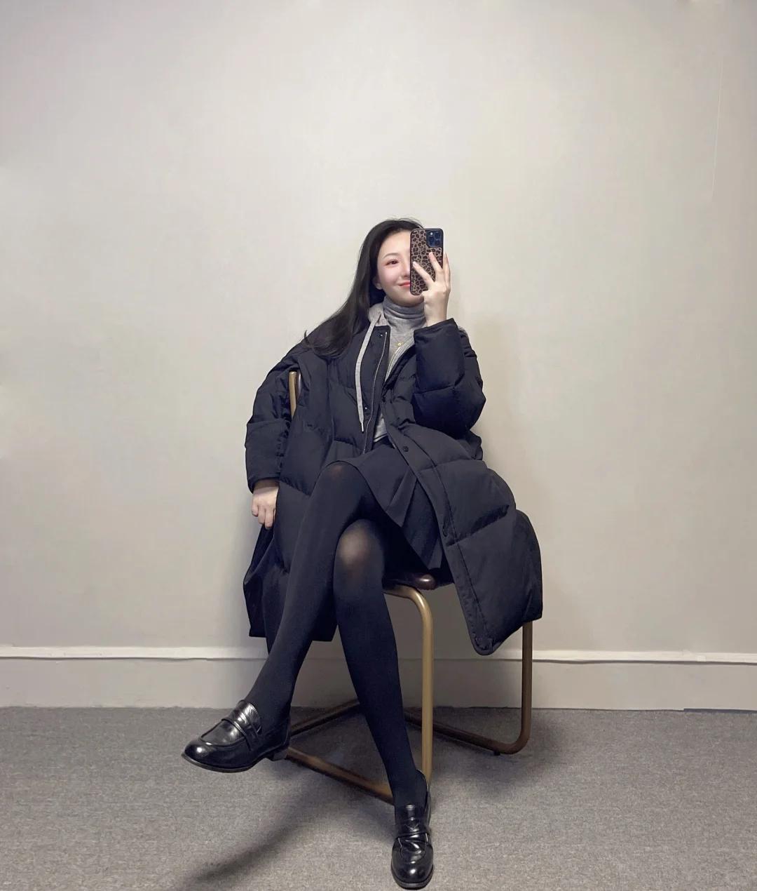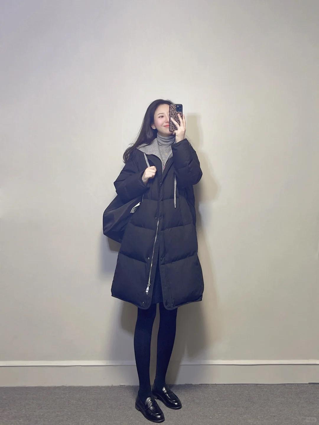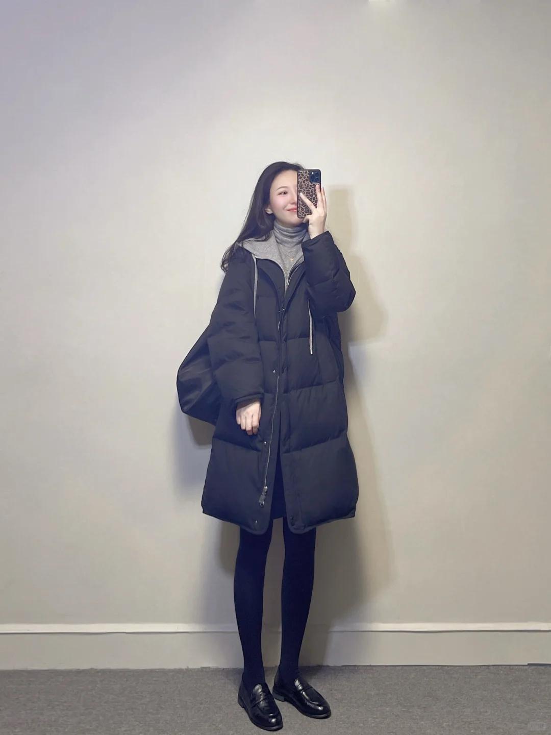 这件外套搭配黑丝美翻啦🥹🥰|||这件带毛领的黑外套真的绝了! 版型宽松不臃肿
