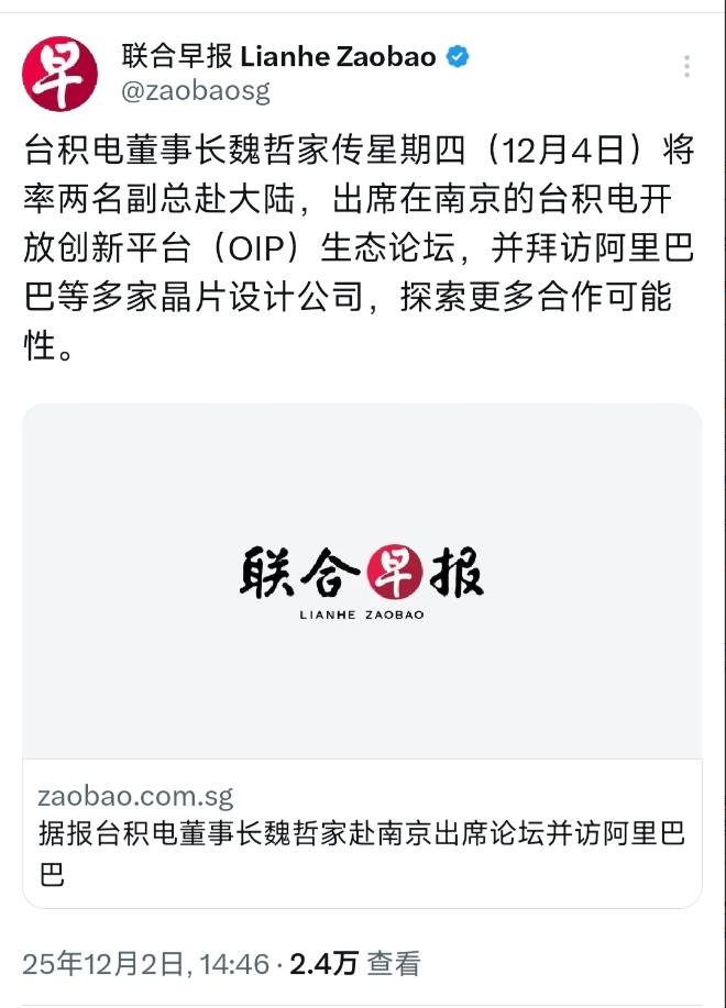 12月2日,新加坡联合早报报道:“传台积电董事长魏哲家星期四(12月4日)将率两名副总赴大陆,出席在南京的台积电开放创新平台(OIP)生态论坛,并拜访阿里巴巴等多家芯片设计公司,探索更多合作可能性。” 这是台积电高层自2023年上海技术论坛后,时隔两年半再次以董事长带队形式赴陆,且选择在美对华芯片限制政策敏感期成行,释放出明确的战略信号。 此刻的台积电正站在政策悬崖边,2022年美国对华芯片设备禁令虽给予台积电南京厂(Fab 16)永久豁免,但今年9月美方突然宣布该豁免将于年底到期,意味着28nm及以上制程设备的维护、升级均需重新申请许可。 这对年产能超40万片、占大陆8英寸晶圆产能15%的南京厂构成直接威胁——若许可受阻,设备老化将导致产能萎缩,进而失去大陆中低端芯片市场的基本盘。 魏哲家此行的核心目标,正是在合规框架下寻找“续命”方案,论坛聚焦的A16(16nm)、N2(2nm)等制程虽受限于美国技术,但配套的封装技术(如CoWoS)和设计工具链(如针对AI推理芯片的能效优化)仍有合作空间。 尤其大陆2025年1000亿至2000亿颗的芯片需求中,AI推理、边缘计算、汽车电子等领域对成熟制程的迭代需求旺盛,台积电若能通过OIP平台绑定寒武纪、地平线等设计公司,即使无法扩建产能,亦可通过技术授权和定制化服务维持收入——毕竟2025年前三季度大陆仍贡献其8%营收,远超欧洲市场。 不同于2023年上海论坛侧重技术展示,此次南京之行更具务实性,魏哲家计划走访的阿里巴巴,其平头哥半导体已在RISC-V架构和AI芯片领域深耕,若台积电能为其定制基于N3E(3nm增强版)的低功耗方案,既能规避美国对“全谱系先进制程”的限制,又可抢占大陆边缘计算市场。 这种“曲线合作”模式,正是台积电应对禁令的新策略——不碰被明确禁止的14nm以下制程,转而在封装、设计方法论、IP核共享等“灰色地带”构建生态护城河。 此外,南京作为大陆半导体产业重镇,聚集了台积电、中芯国际、长江存储等企业,本地EDA公司(如华大九天)和材料厂商的崛起,正在重塑供应链格局。 台积电选择论坛收官站设于此,意在向大陆伙伴展示:即使美国卡脖子,其成熟制程的生态整合能力(如OIP平台汇聚的500多家合作伙伴)仍是大陆企业短期内难以替代的资源。这种“技术依赖+利益捆绑”的组合,远比新建厂房更隐蔽,也更持久。 此次行程的时间敏感点还在于——12月4日恰是美国《芯片与科学法案》第二轮补贴申请截止前一周。 台积电已承诺在美国投资400亿美元建厂,但亚利桑那州工厂良率低于预期、成本超支30%的现实,让其不得不重新权衡。 大陆市场的“稳定器”作用愈发凸显:当美国工厂陷入技术泥潭时,南京厂28nm芯片的毛利率仍高达45%,远超台积电平均水平。 魏哲家此时访陆,既是向华盛顿表明“不放弃全球市场”的姿态,也是对大陆客户释放“不会彻底脱钩”的安抚。 但台积电的算盘未必能完全如意,大陆芯片产业的“去美化”进程正在加速:中芯国际28nm国产设备渗透率已超60%,长江存储128层3D NAND实现量产,华为海思更在14nm以上制程实现全产业链国产化。 若台积电仅停留在成熟制程的生态捆绑,而非实质性技术开放,其大陆客户可能加速转向本土代工厂。 这也是为何魏哲家此行特别强调“探索更多合作可能性”——从设计工具到封装技术,从人才培养到联合研发,任何突破都可能成为台积电在大陆的新增长点。 魏哲家的南京之行,本质是台积电在中美科技冷战中的一次“战术突围”,它既不敢触碰美国的禁令红线,又不愿失去大陆的市场红利,只能在合规缝隙中寻找平衡点。 对于大陆而言,这既是观察台积电战略动向的窗口,更是检验自身产业链韧性的试金石——当全球最大代工厂主动寻求合作时,我们能否在吸收技术的同时,加速自主创新? 这场发生在南京香格里拉酒店的论坛,或许不会改变中美博弈的大趋势,但注定会成为半导体产业链重构的一个微小注脚。
