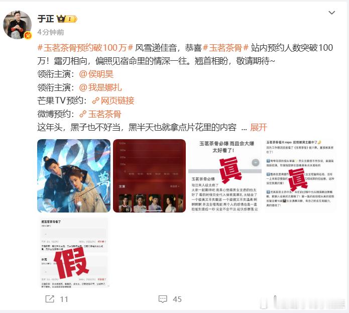 于正这年头黑子也不好当玉茗茶骨预约人数破百万观众用预约投票,《玉茗茶骨》破百万