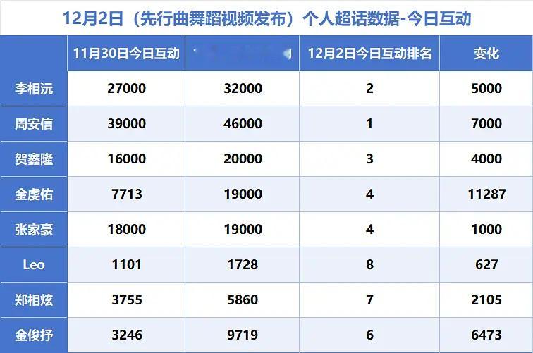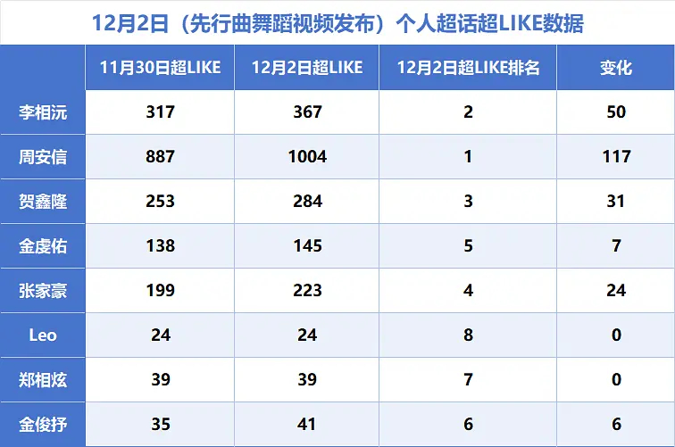 ALD1 数据📊|12月2日个人超话数据李相沅/周安信/贺鑫隆/金虔佑/张家豪/李理悟/郑相炫/金俊抒