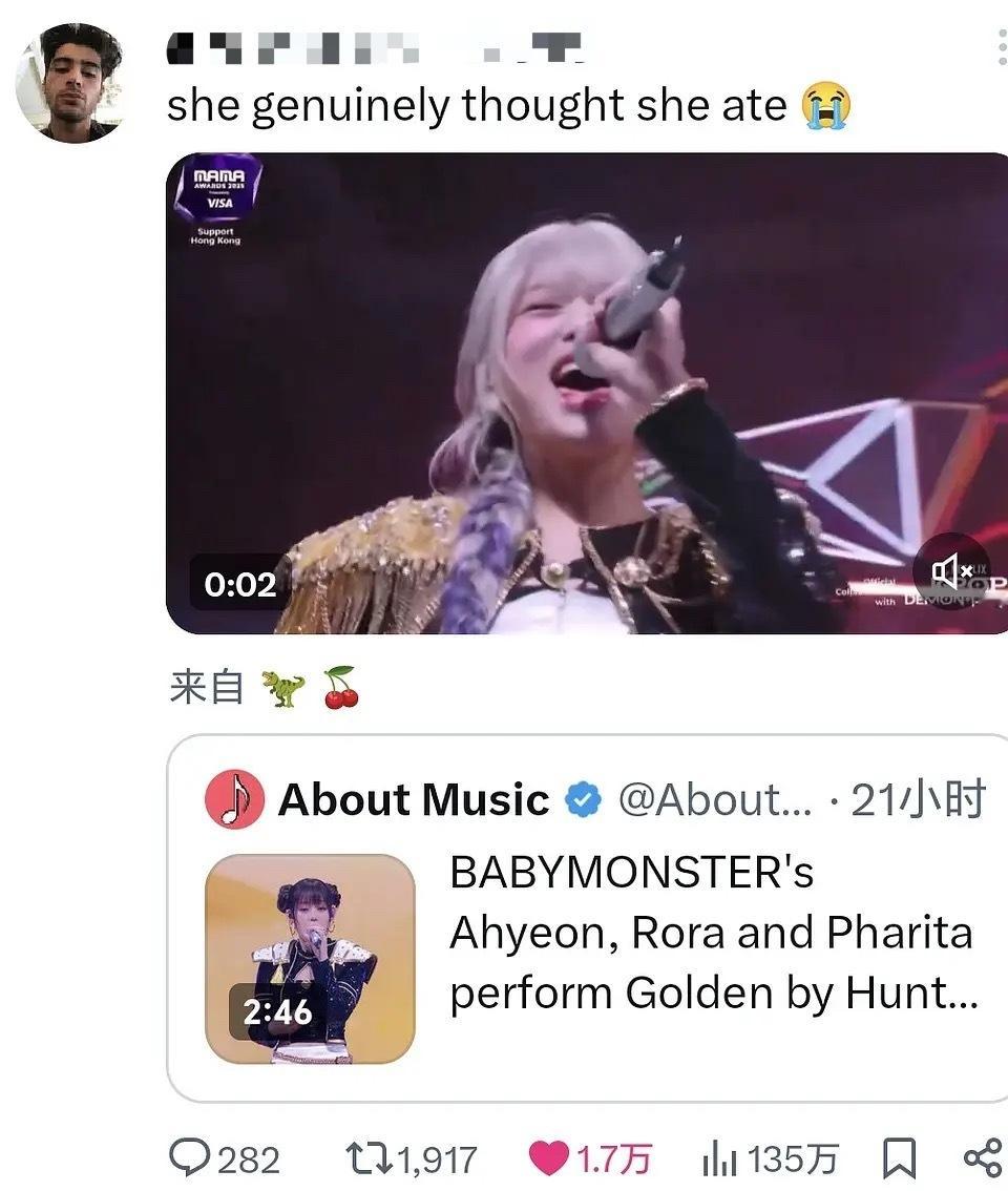 BabyMonster Pharita & 郑雅贤Ahyeon & Rora 《Golden》舞台外网大翻车