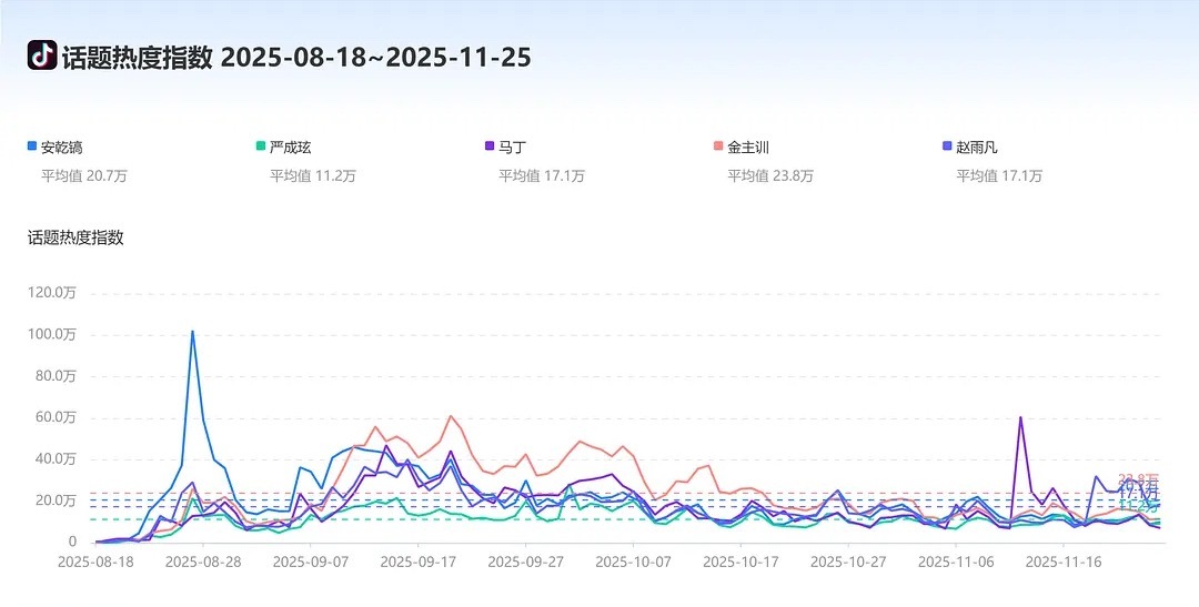 CORTIS Cortis 出道 100 天抖音话题热度指数1️⃣赵雨凡 17.1w2️⃣金主训 23.8w3️⃣马丁 17.1w Martin 16.5w4️⃣严成玹 11.2w5️⃣安乾镐 20.7w
