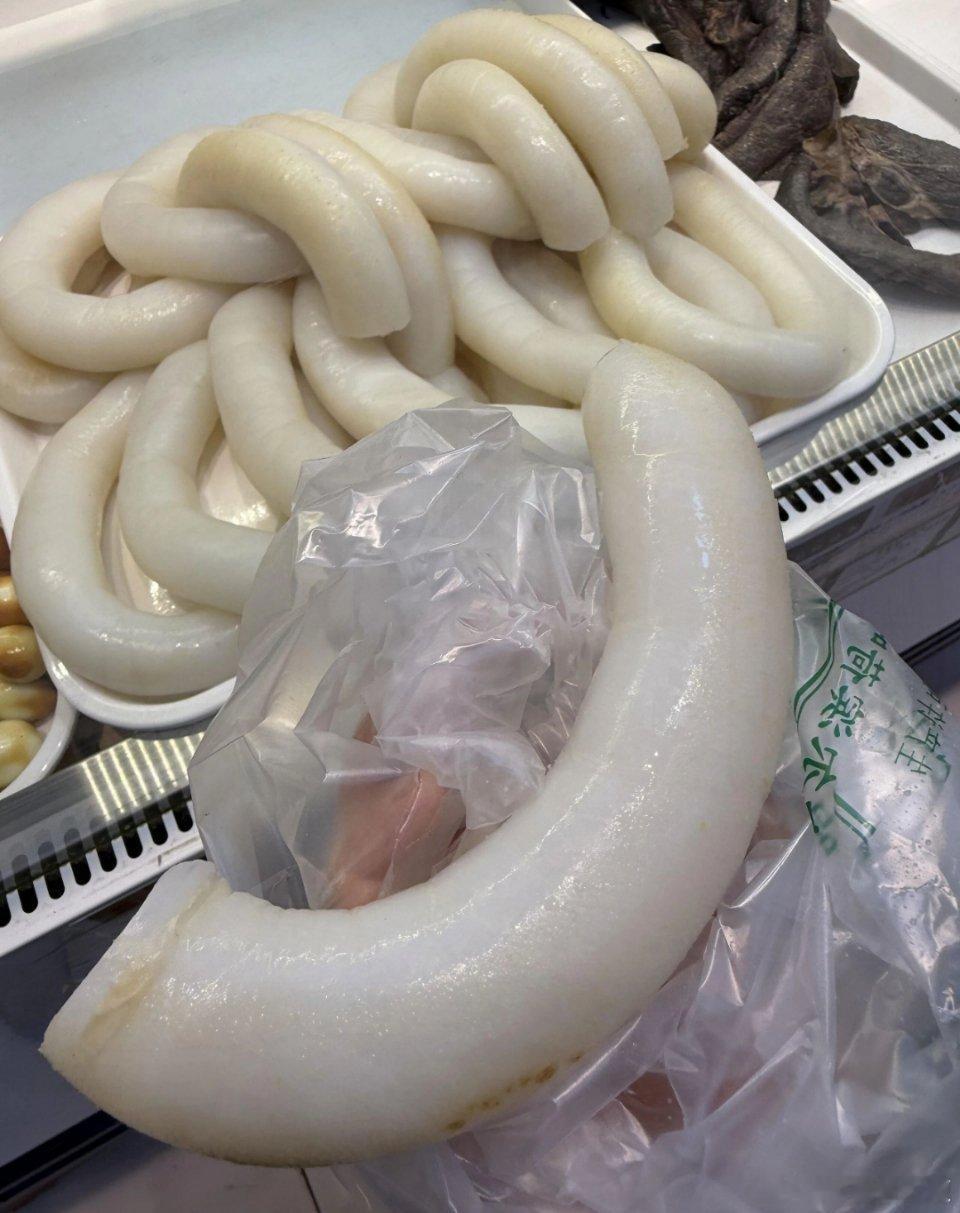 有东北的朋友知道这是什么肠吗?东北同事给的,说这个也是香肠,切厚薄不均匀的片,煎了,加蒜水吃,是这样吃吗
