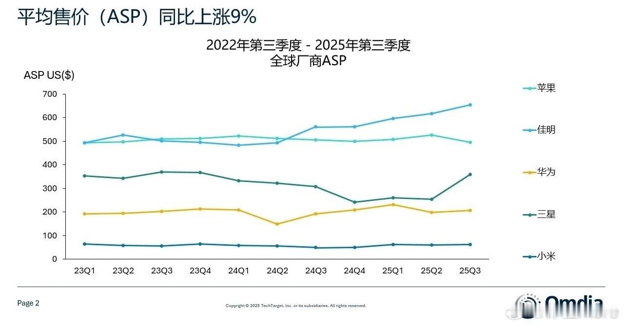 三季度全球可穿戴设备份额,小米继续领跑,前五名:小米、苹果、华为、三星、佳明。而ASP方面,则是佳明第一,比苹果都高,佳明的高端户外很受认可。前五名:佳明、苹果、三星、华为、小米。