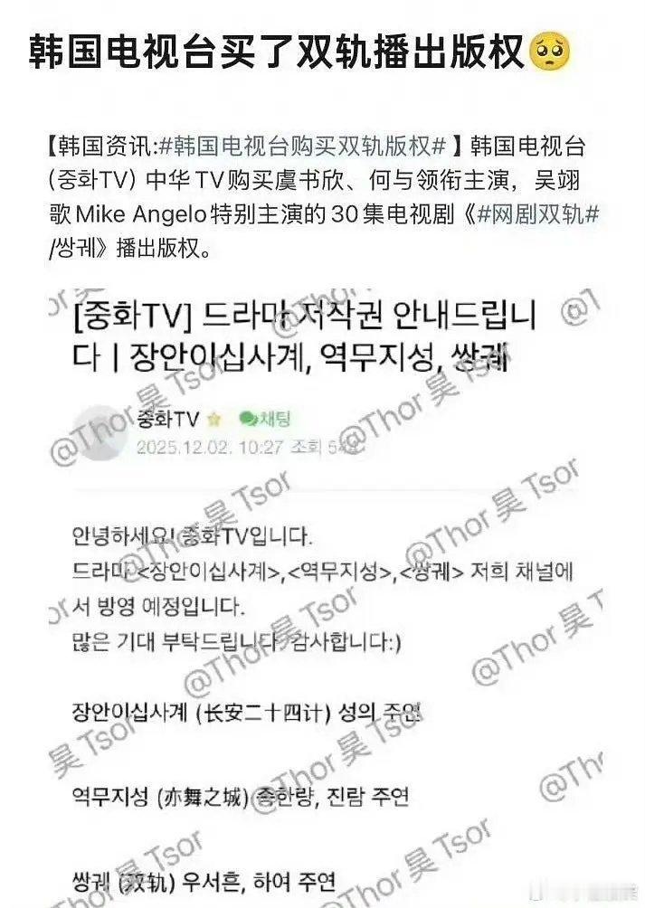 双轨还没播就被韩国买了版权马上要北美播出不止北美 按时间顺序 北美 南美 欧洲 亚洲有多个国家都要播出