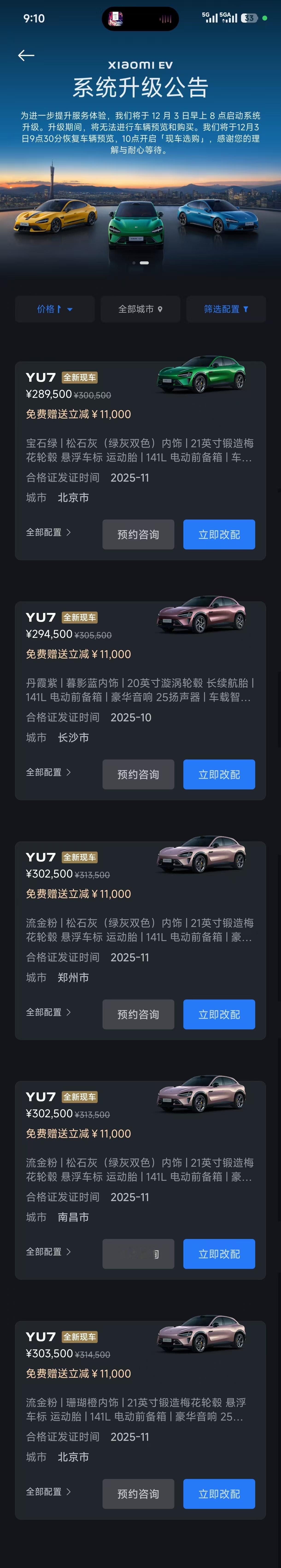 这几款现车的配置选择还算🉑,想早点提车的可以去看看,尤其是302500那款粉色的我看得起,轮毂选得相当好,也选了25扬声器