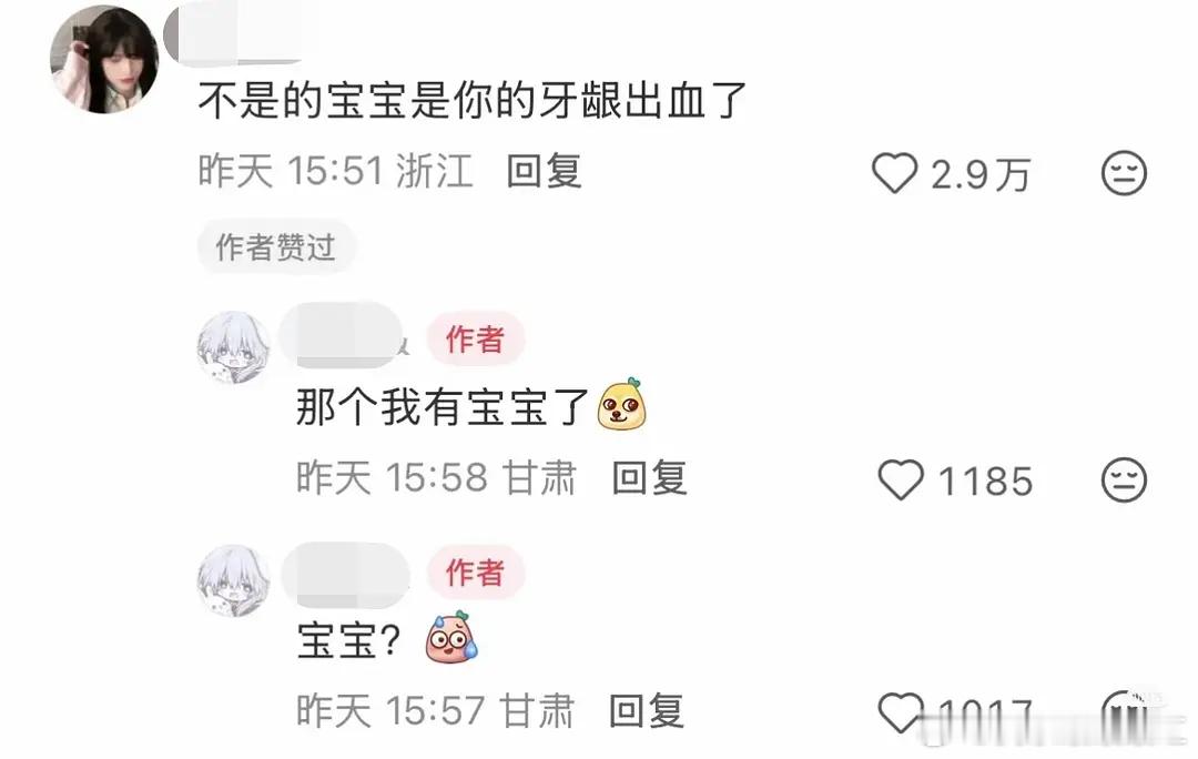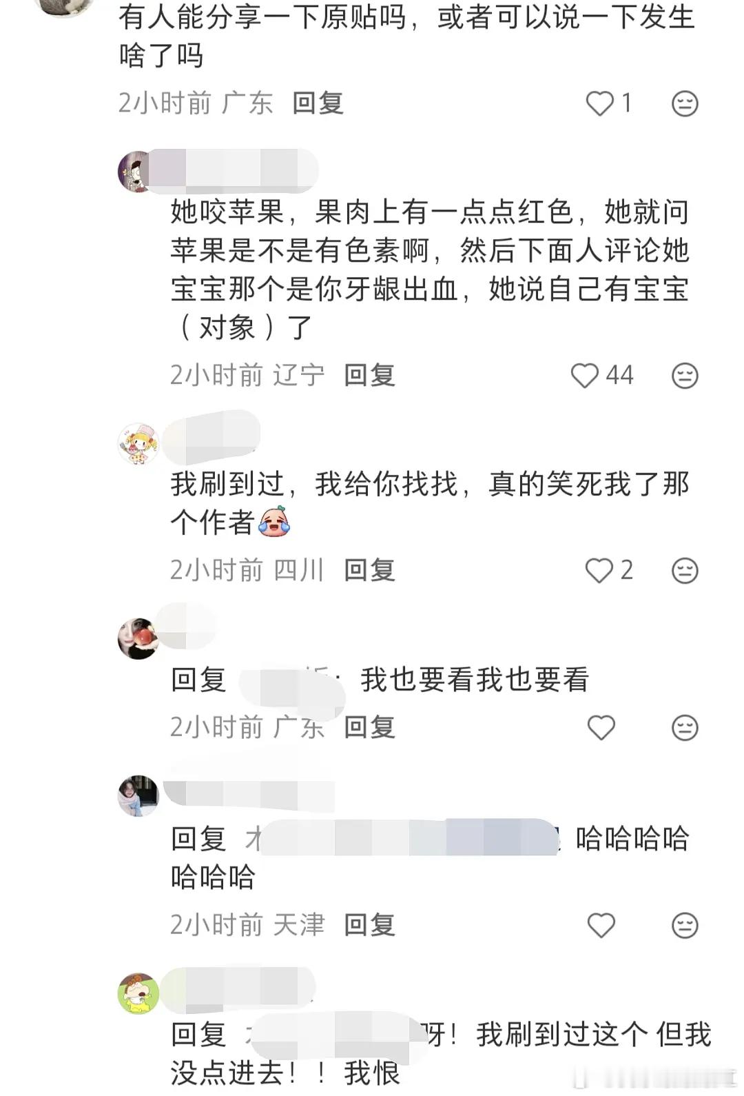 《那个我有宝宝了》笑死我了,贴主发帖问苹果是不是有色素,评论区说宝宝是你牙龈出血了,贴主:我有宝宝了