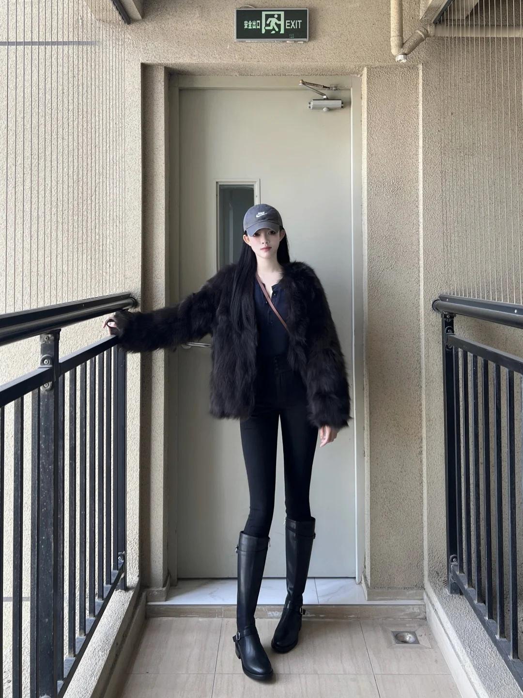 冬天穿什么!皮草➕长靴!加绒不过膝长靴 零下抗寒靴子 一体绒长靴 长靴不露腿穿搭 皮草滑雪穿搭 过膝加绒长靴 秋冬加绒长靴