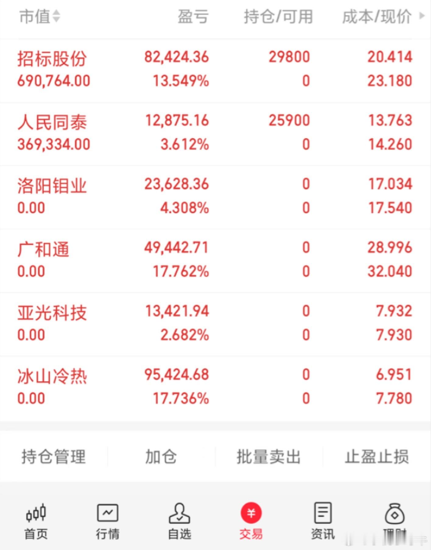 今天买入:人民同泰、招标股份今天卖出:冰山冷热、亚光科技、广和通、洛阳钼业、还是期待有肉吃… 喜欢短线来一起特别声明:这只是我个人的操作记录,不作为任何投资建议,更不是劝 你们有跟买是! 股市有风险,投资需谨慎!