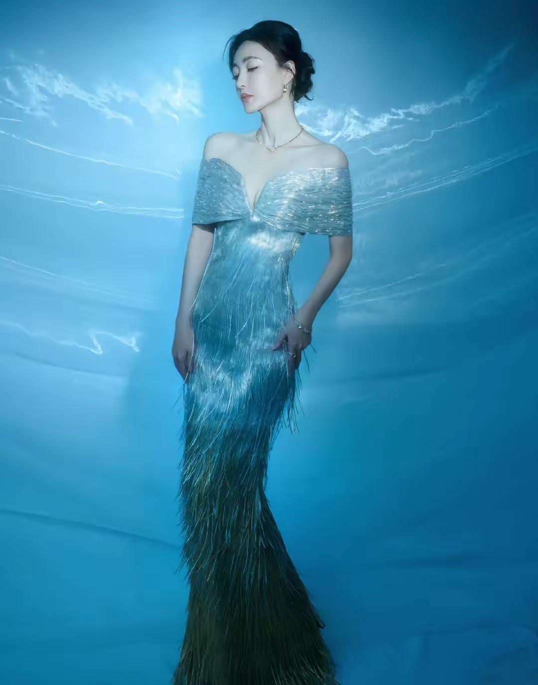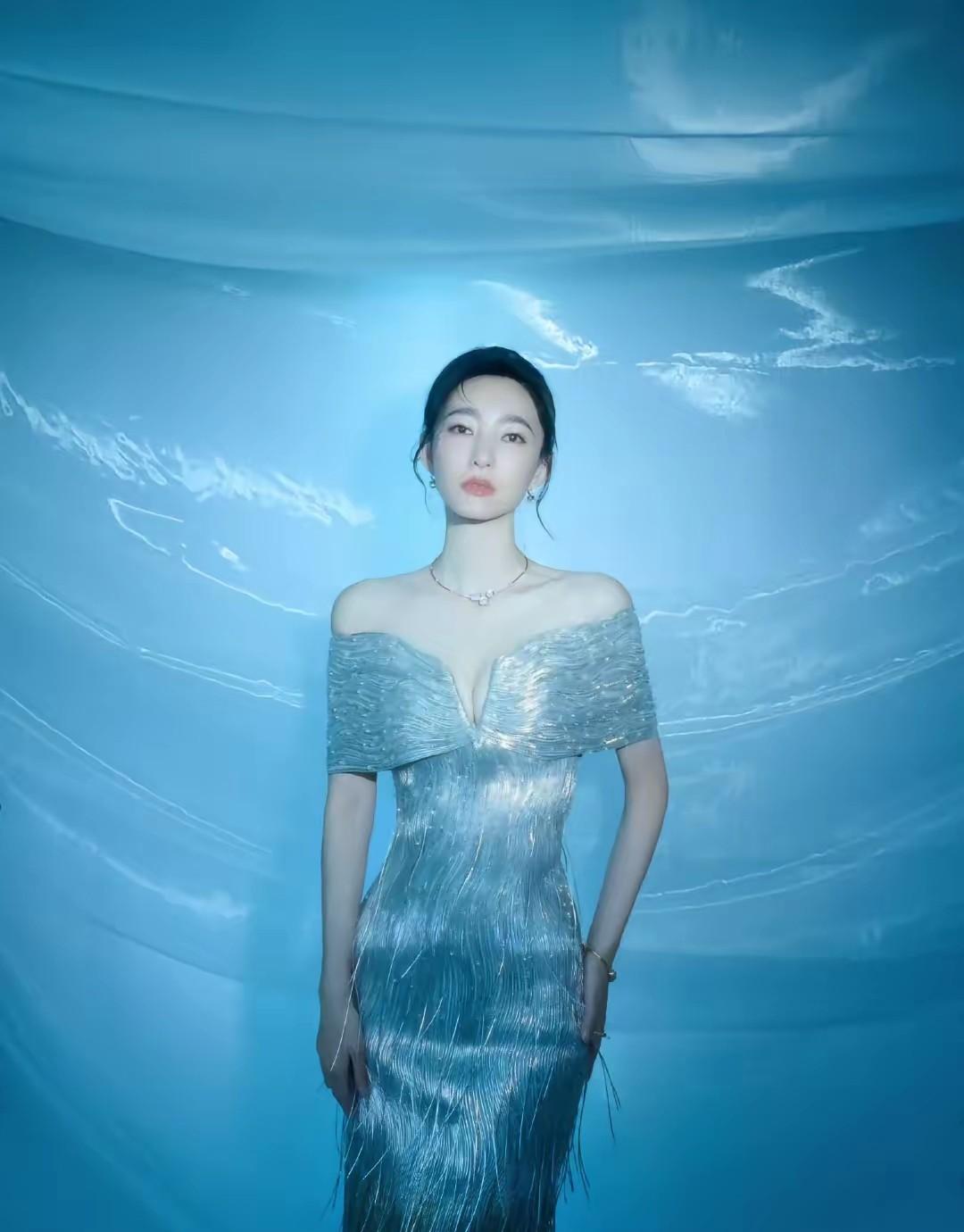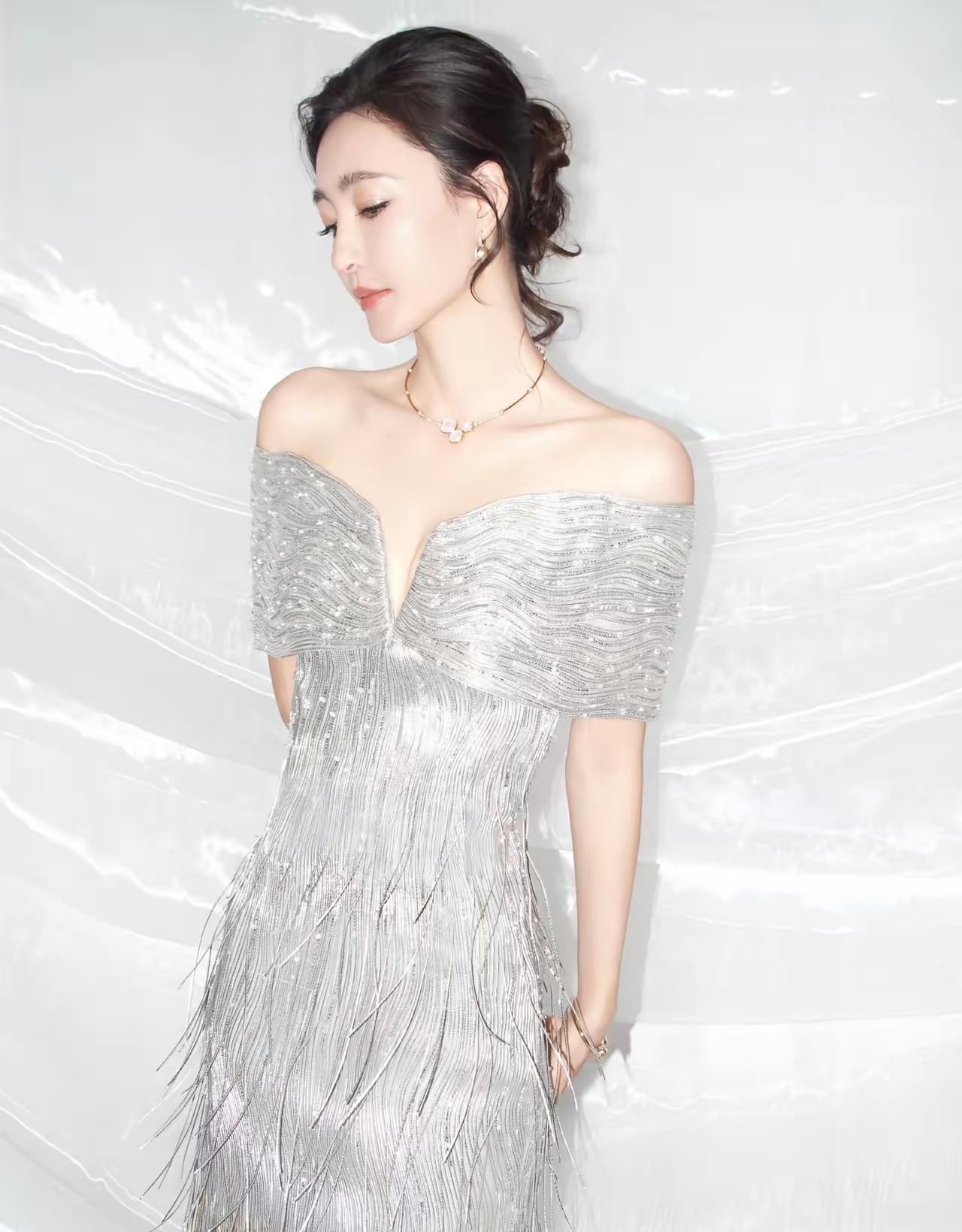 优雅气质,银光闪闪的晚礼服,尽显迷人风采!王丽坤