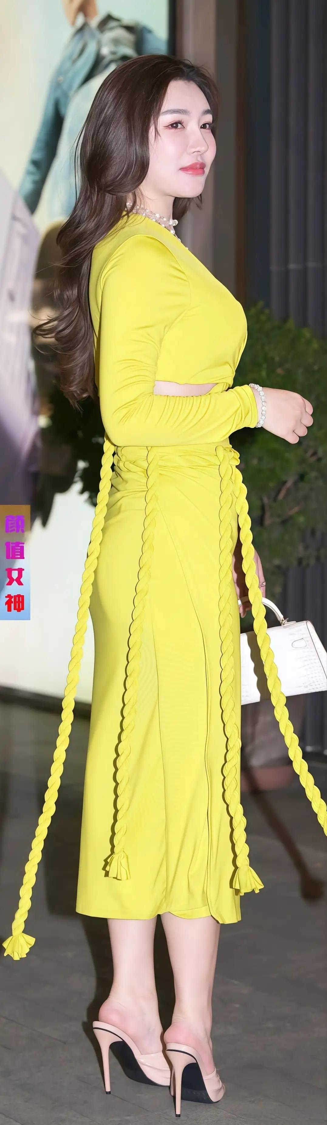 明艳黄衣,绽放街头时尚魅力 在繁华都市的街头,一位女子以一袭亮眼的黄色套装成为视觉焦点。这套装上下分体,上装是长袖短款,巧妙地露出纤细腰肢,下装是中长裙,侧边独特的绳结设计增添了几分随性与时尚感,绳带自然垂落,更显灵动飘逸。 黄色,是充满活力与希望的颜色,穿在她身上,仿佛将阳光披在了身畔,衬得她肌肤胜雪,气质出众。搭配上精致的珍珠项链和手链,增添了优雅韵味,手中的白色手提包简约大方,与黄色形成鲜明对比,更显高级感。脚上的浅色高跟凉鞋,拉长腿部线条的同时,也让她多了几分妩媚。 她的步伐轻盈自信,每一步都摇曳生姿。这身穿搭不仅展现了她的时尚品味,更凸显了她独特的个性与魅力,在喧嚣的城市中,自成一道亮丽的风景线。