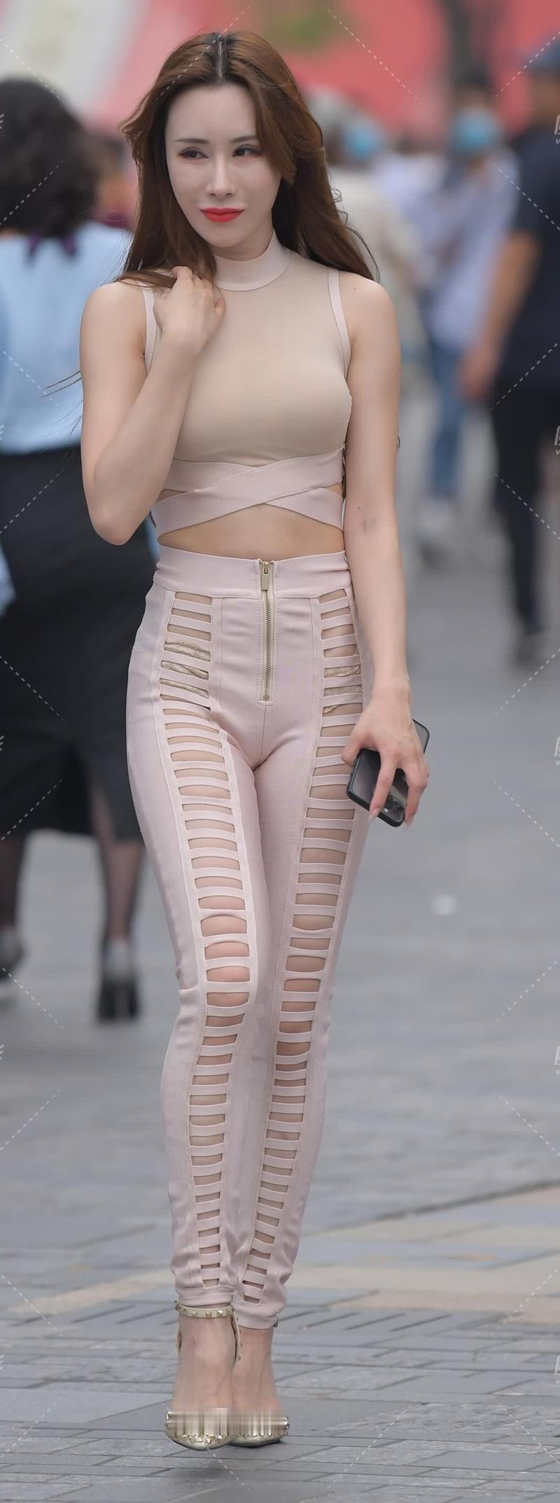 都市街头,时尚辣妹,自信步伐,引人注目!
