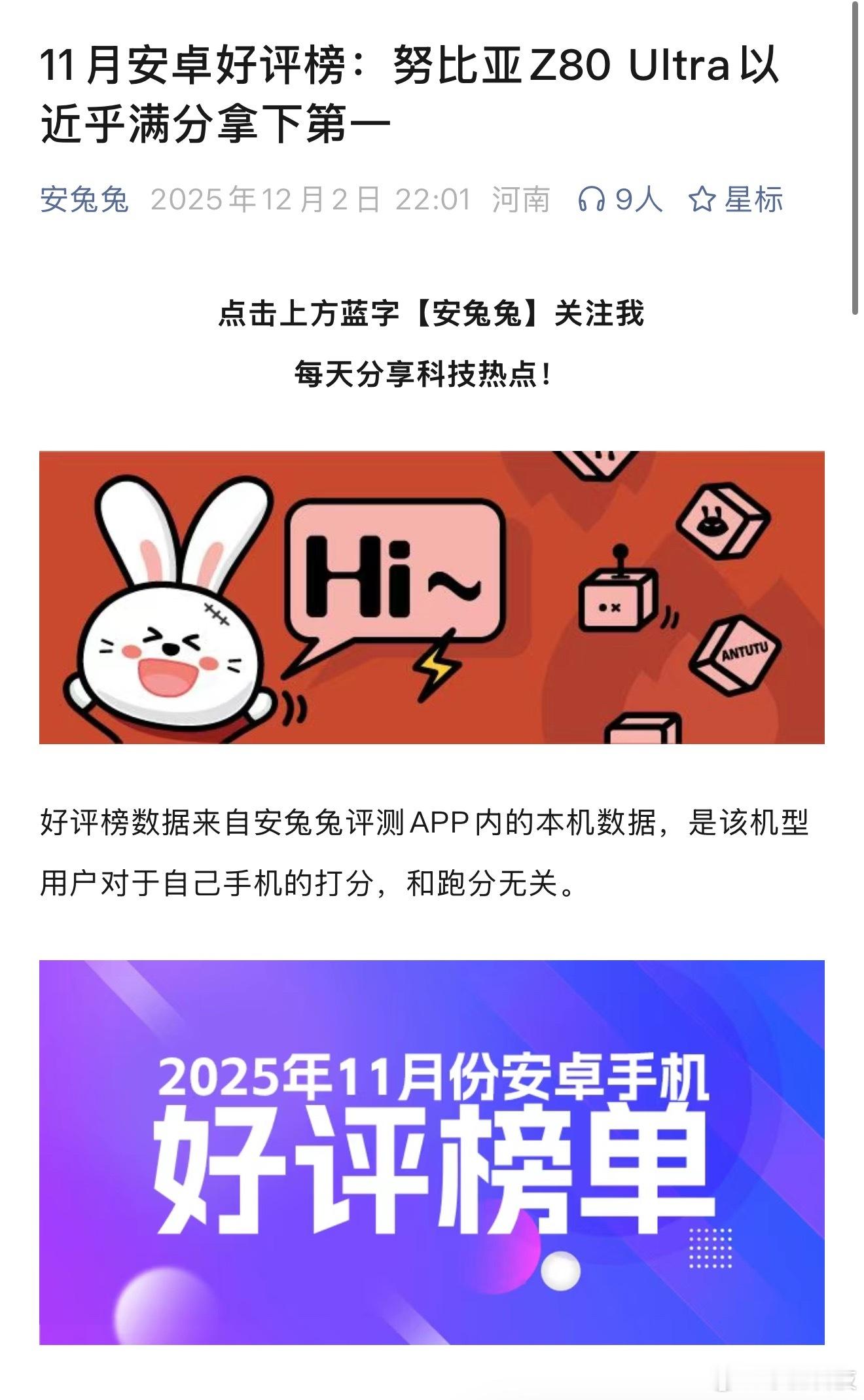 现在智能手机也好,其它汽车等各行各业也好,都已经很透明了。11月安卓好评榜,努比亚Z80 Ultra以99.99%接近100%的的成绩拿下第一,说明大家是真的喜欢它。智能手机市场越来越卷,这款智能手机独特6.85英寸1.5K无挖孔真全面屏就非常拉好感,视野更开阔更清晰,还非常有辨识度,很戳喜欢电竞、潮流的年轻人的审美。更不用说还有第五代骁龙8至尊版芯片加持,7200mAh大电池和90W快充,性能和续航,影像配置一样很顶,完全挑不出一点毛病,同价位手机里真的很有竞争力的。
