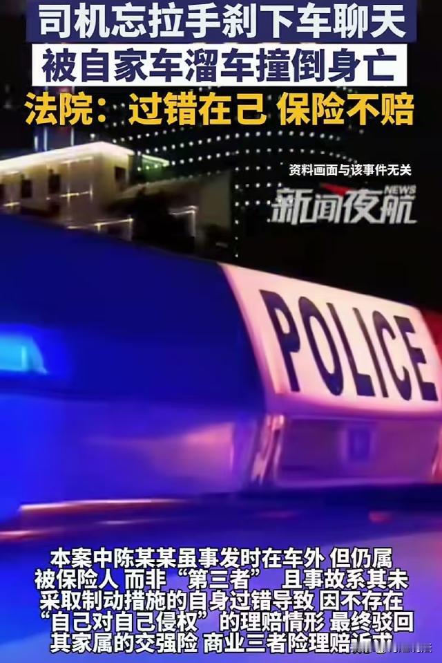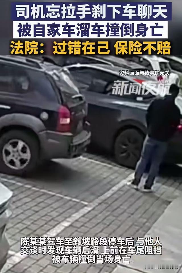 自己撞死自己保险该赔吗?湖南,男子将车子停在斜坡上下车和熟人说话,结果未制动的车