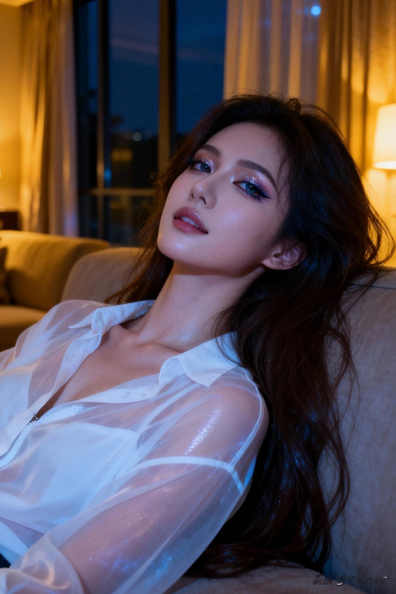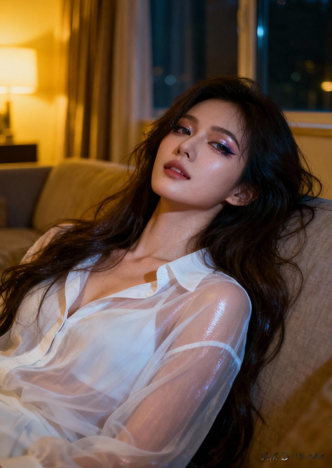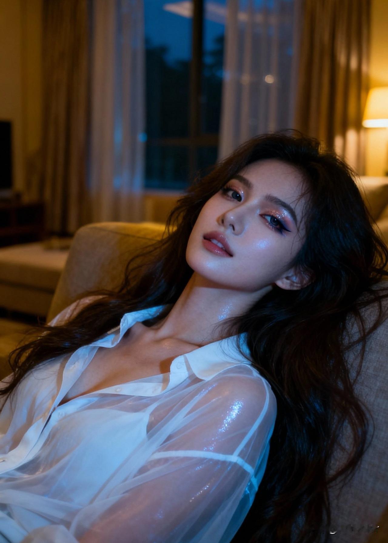 夜色笼纱,美人倚窗。
